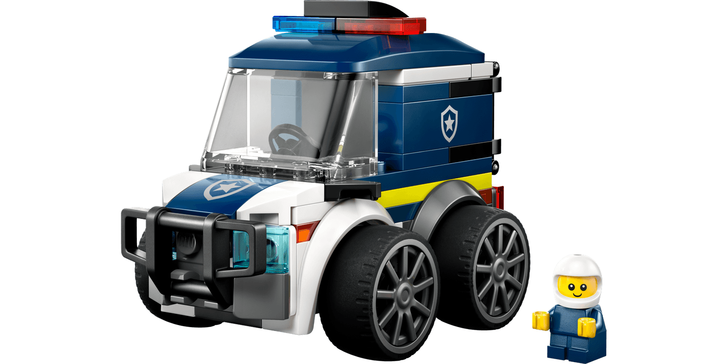 This compact toy police truck with cool alloy wheels, low-profile rubber tyres, a push bar, prison bars and toy emergency lights offers young builders a fun way to explore the world of LEGO City. The building set also includes a LEGO City Rides police officer junior minifigure that fits in the driver’s cab for hours of pretend play. Kids can also enjoy intuitive building with the LEGO Builder app, zooming and rotating with 3D instructions, while saving and tracking progress – all from the app. Part of the LEGO City Rides collection, this easy-to-build police truck toy makes a fun kids' party bag filler and a great birthday gift for 5+ year old boys and girls who love toy cars and imaginative play. Add it to other LEGO City sets (sold separately) for more adventures.