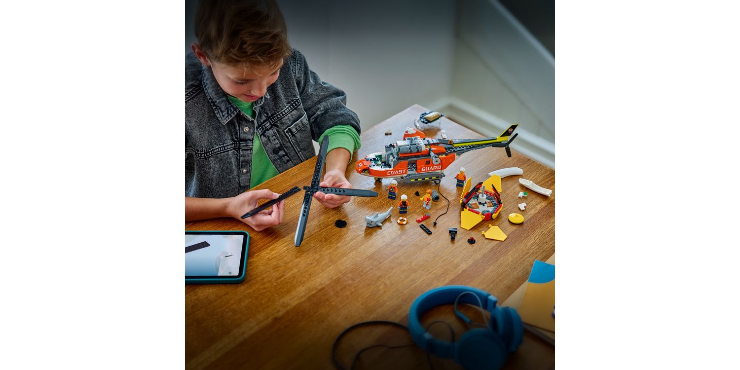 The impressive red toy helicopter features spinnable rotors, sliding side doors, a fold-down rear ramp and a detailed cockpit and fuselage. Kids can lower a crew member with the helicopter winch and the set also includes a rescue capsule that folds open for access to its interior. Just add the pilot, civilian, and 2 coast guard LEGO minifigures, plus a shark figure for hours of imaginative play. This detailed building set makes a fun birthday gift for 7+ year old boys and girls who love action-packed imaginative play. Add it to other LEGO City sets (sold separately) for even bigger adventures. Kids can ramp up the building fun with this LEGO Coast Guard Helicopter toy in the LEGO Builder app, where they can zoom and rotate with 3D instructions, saving and tracking progress.