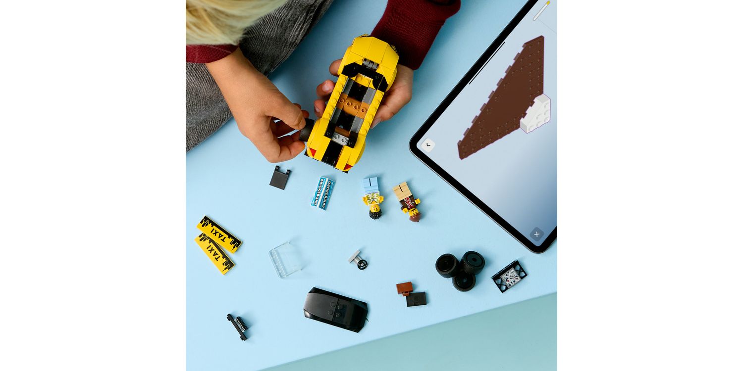 This fun model car kit features a yellow taxi with a modern electric vehicle design, an opening boot with luggage, and a bonnet that lifts to reveal a pretend electric engine. The cool toy car comes with printed stickers including a GPS screen, taxi logo, rooftop advertisement and battery. Kids can also remove the roof to put in the LEGO taxi driver and tourist minifigures for imaginative play and storytelling. With the LEGO Builder app, kids can enjoy intuitive building using 3D instructions that let them zoom, rotate, save, and track progress – all from the app. This buildable electric-style car toy makes a great anytime treat or birthday gift for 5+ year old boys and girls. Add it to others (sold separately) from the LEGO City range for more exciting adventures.