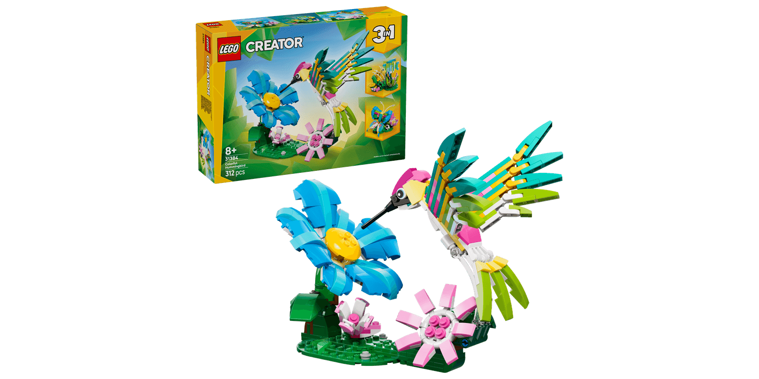 Animal-loving kids can play out charming stories with this LEGO Creator 3in1 Wild Animals: Colourful Hummingbird (31384) building toy for 8+ year old girls and boys.