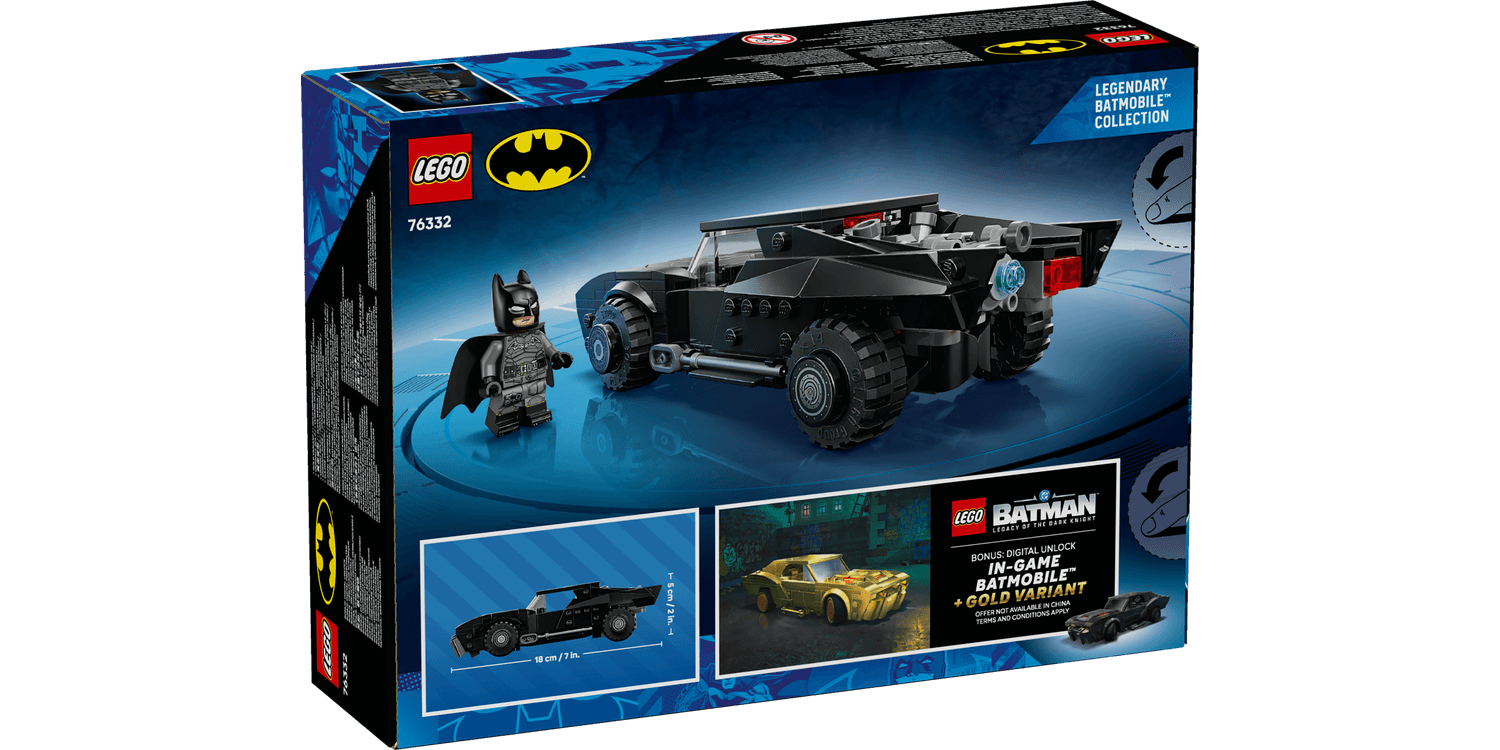 Celebrate the 20th anniversary of LEGO DC Batman with this collectible building set featuring the iconic car and a Batman minifigure wearing a fabric cape. The play-and-display Batmobile car model is authentically detailed and features a removable roof, which provides access to the vehicle’s cockpit where the LEGO Batman minifigure can be seated. A commemorative 20th anniversary golden coin fits beneath the removable bonnet. And with the LEGO Builder app, kids can build with confidence – zoom, rotate in 3D and track progress with easy-to-follow digital instructions. Set contains 330 pieces. A great Batman gift for 9+ year old boys and girls, this set also includes a bonus digital unlock feature: Redeem The Batman Batmobile and a golden variant of the Batmobile in the video game LEGO Batman - Legacy of the Dark Knight.