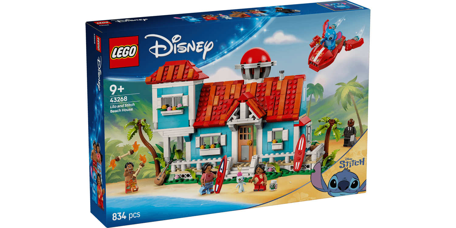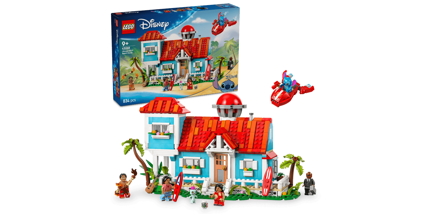 Amazing adventures await fans and kids in this LEGO | Disney Lilo and Stitch Beach House (43268) building toy for 9+ year old girls and boys. Featuring a 2-level beach house model, this cool building set has lots of film details and Easter eggs, including 2 surfboards, Lilo’s doll Scrump, a record player, pickle jar, a brick-built spaceship, plus 5 LEGO ǀ Disney character minifigures – David, Lilo, Mr. Bubbles, Nani and Stitch – for endless fun play. This Disney building toy for girls and boys will be the fantasy set everyone talks about, offering older kids a more complex build that also inspires pretend play. It works with other LEGO ǀ Disney building sets (sold separately) and is ideal for gift-giving. Kids and adult Disney fans alike will love exploring the LEGO house with beloved Disney characters. Builders also get an intuitive building experience with the LEGO Builder app, where they can zoom in and rotate models in 3D, save sets and track progress.
