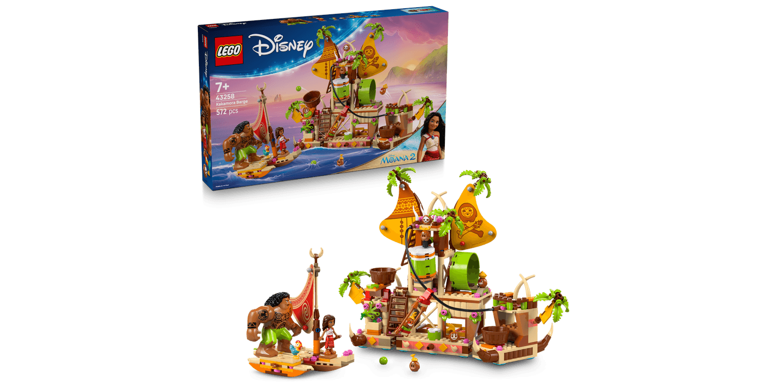 Sailing adventures await fans with this LEGO | Disney Moana 2 Kakamora Barge (43258) building toy for 7+ year old girls and boys. This LEGO set features a buildable toy boat from Disney’s Moana 2 which includes a catapult, secret hiding spots, a treasure chest and a zipline – and splits into 3 smaller boats! Plus, there’s a double-hulled canoe with a hidden crate, and 9 LEGO ǀ Disney characters: a Moana mini doll, a Maui figure, Heihei the chicken, Kotu (the Kakamora hero) and 5 more Kakamora. Children get an easy and intuitive building experience on the LEGO builder app, where they can zoom in, rotate models in 3D, save building sets and track progress. This buildable Disney Moana 2 toy makes a magical birthday gift for 7+ year old girls, boys and also adult fans. It can also be added to other LEGO building sets and LEGO ǀ Disney building toys (sold separately).