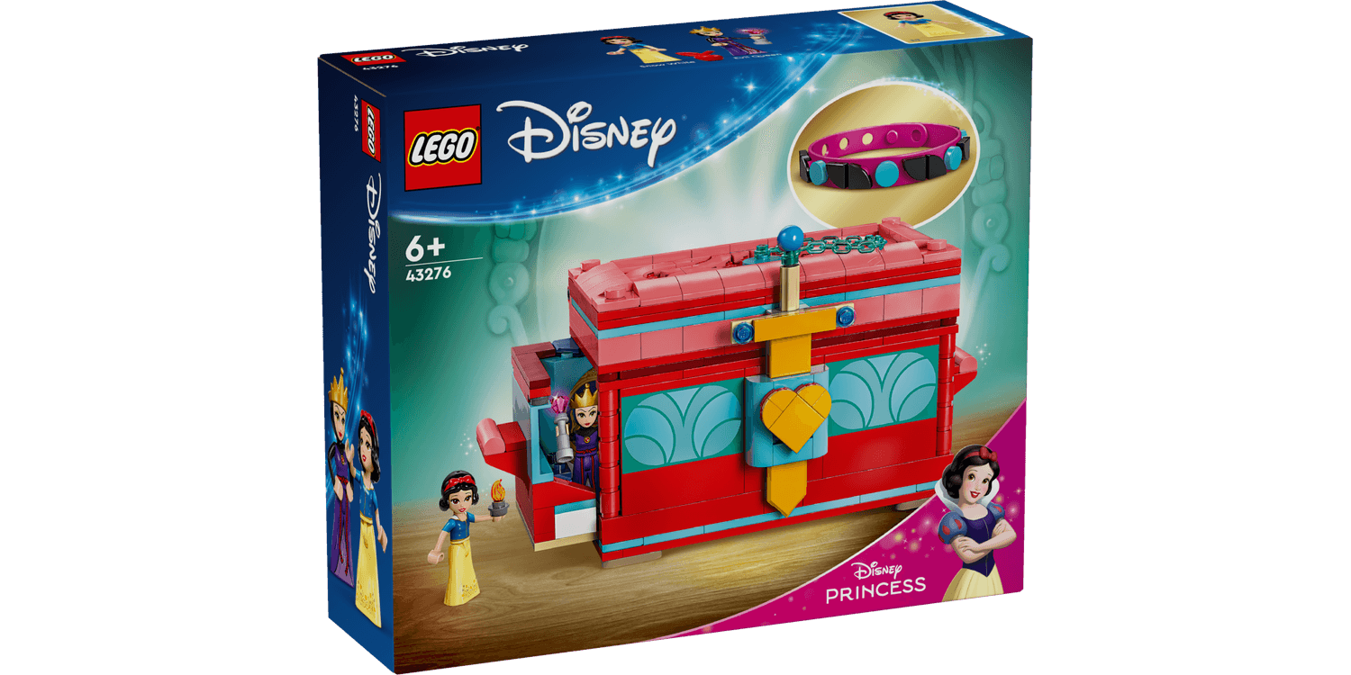 Delight kids and Disney fans aged 6+ with the premium gift of this LEGO® ǀ Disney Snow White’s Jewellery Box (43276) buildable toy playset. It features a box with an opening lid and handles on each side that pull open to reveal hidden rooms, a sword and chain lock, Snow White and the Evil Queen LEGO ǀ Disney mini-doll figures and a colourful bracelet with plenty of decorating elements to design, wear or share. This Disney construction set helps boost children’s confidence and inspire creativity as they play with the secret rooms and decorate the bracelet any way they like. The model also works with other building sets (sold separately) in the LEGO ǀ Disney range. Kids and grown-up fans alike will appreciate all the details in the building set and can enjoy creating one of the latest toys together as a fun Disney gift. Kids also get an easy and intuitive building experience with the LEGO Builder app. They can zoom in and rotate models in 3D, save sets and track their progress.
