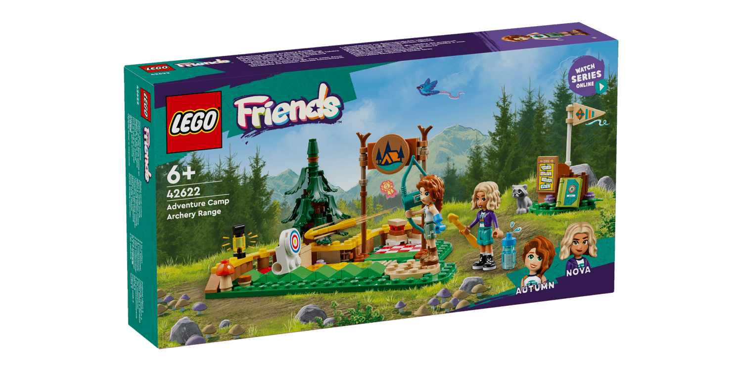 The LEGO® Friends Adventure Camp Archery Range (42622) building toy for kids aged 6+ comes with Autumn and Nova mini-dolls, a raccoon and lots of sports playset accessories. Girls and boys can act out target practice for real with this exciting set as the bow actually shoots the arrows. See the target flip down when the arrow hits it! There’s a colour-coded difficulty scale so kids can move the target back for a bigger challenge. Little adventurers can create endless stories with this children’s archery-themed set. Autumn comes with 2 different faces to change her expression as she takes aim. Nova receives the archery badge for her camp activity book. Then Autumn and Nova relax with a sandwich. Watch out for the cheeky raccoon who’s hoping for a bite of the friends’ lunch! This set makes a great gift idea for kids and comes with the LEGO Builder app for an easy and intuitive building adventure. Here kids can zoom in and rotate models in 3D, save sets and track progress.