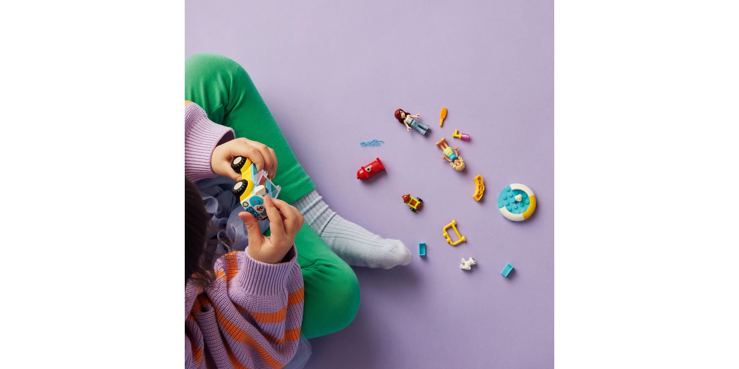 Girls and boys can enjoy hours of imaginative play with the 2 mini-dolls, 2 dog figures, a buildable car, pool and lots of pet care accessories. Little animal-lovers can have lots of fun helping Paisley and Nova wash and groom the 2 pups – Pickle and Juno. They’ll love putting the dogs into the pool for a bath. Use the shampoo and brushes to get the pups in tip-top condition – Pickle loves to get bubbles on his nose! Once the dogs are clean, load the accessories back into the car, ready to drive to the next customer. LEGO 4+ kids’ toy sets are designed to give kids a quick and fun building experience. They come with a helpful Starter Brick – a sturdy base on which kids create the scene.
