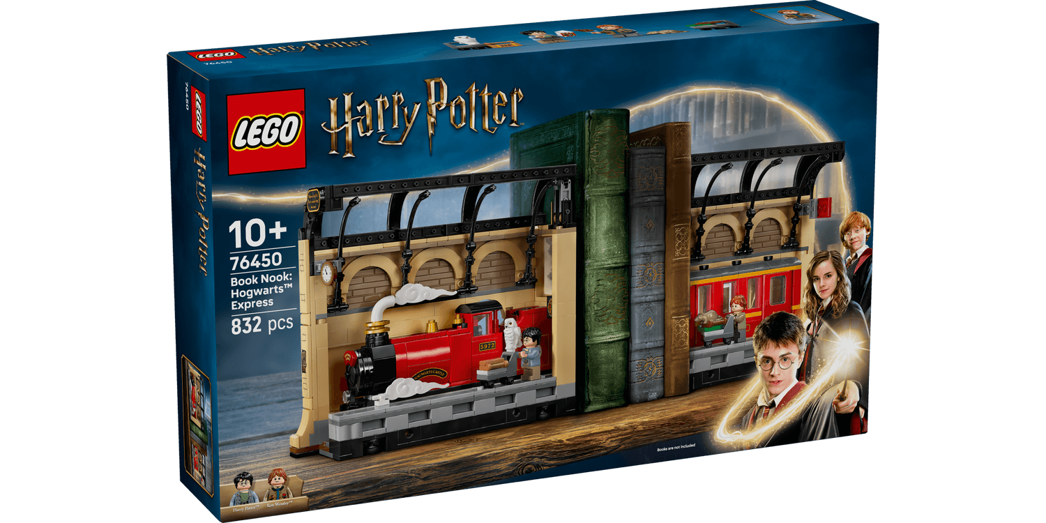Bring wizardry to kids’ bookshelves with the first-ever LEGO Harry Potter book nook (76450), featuring a buildable section of the Hogwarts Express – a creative way to make an enchanting book display. This magical Harry Potter toy for 10+ year old boys & girls lets children recreate iconic scenes at King’s Cross Platform 9¾ with LEGO Harry Potter and Ron Weasley minifigures, plus LEGO figures of their pets Hedwig and Scabbers. The train toy in this building set includes a detailed locomotive and carriage with side cutouts for minifigure access, and the carriage has mirrors at one end to create the illusion of a longer train. A fun Harry Potter-themed gift for 10+ year old boys, girls and older fans, this fun, collectible train set is designed to create a customisable display. Open the model for easy play on the platform, close the model to fit neatly between books or divide the locomotive and carriage sections to create bookends. However your young wizard, witch or Muggle chooses to display it, this building set makes a magical Harry Potter decoration.