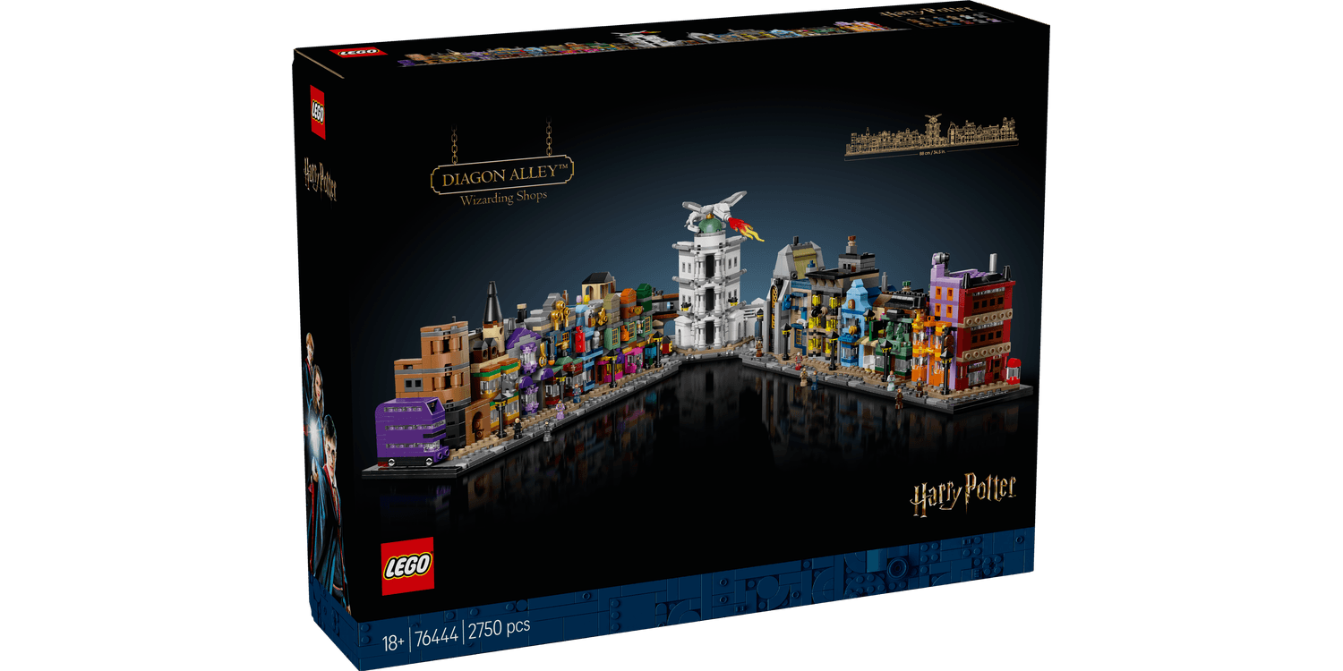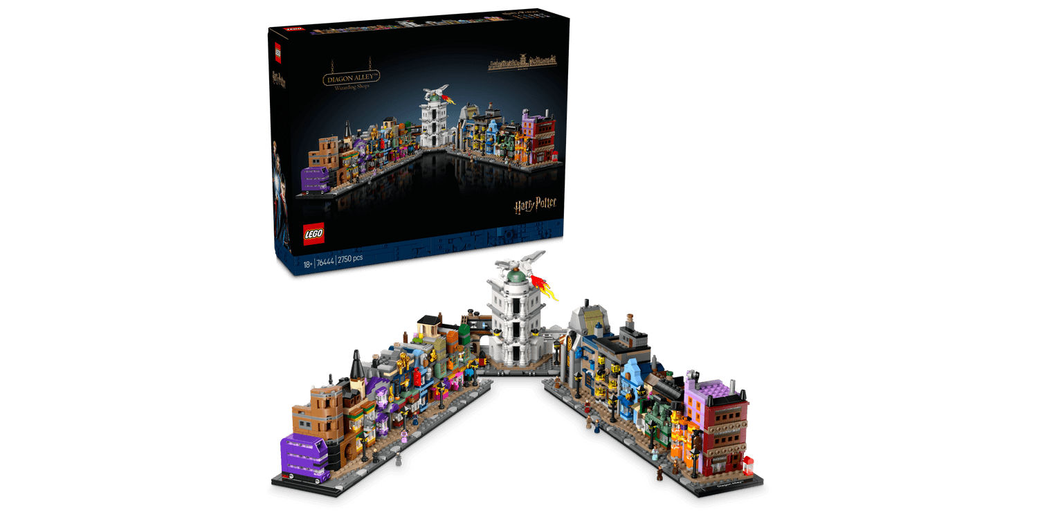Escape to a magical world with this intricately detailed, microscale LEGO Harry Potter display model of the Diagon Alley wizarding shops (76444). This collectible LEGO Harry Potter building set for adults invites fans to recreate iconic Diagon Alley stores, including Weasley’s Wizard Wheezes, Florean Fortescue’s Ice Cream Parlour, Ollivanders, Mr. Mulpepper’s Apothecary, plus Gringotts Wizarding Bank, the Leaky Cauldron and The Daily Prophet HQ. Each building has instantly recognisable exterior details and contains delightful Easter eggs inside. This magic Harry Potter Diagon Alley model makes a striking room décor piece. Display it as either a 2-sided street or as one long row of buildings or divide it into 5 sections to take a closer look. Add the 12 unique LEGO Harry Potter micro figures and the Knight Bus to spark memories of classic scenes. This microscale building set is part of a range of LEGO Sets for Adults and makes a super treat for yourself or a Harry Potter gift for men, women and other fans.