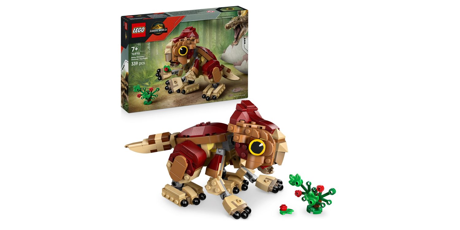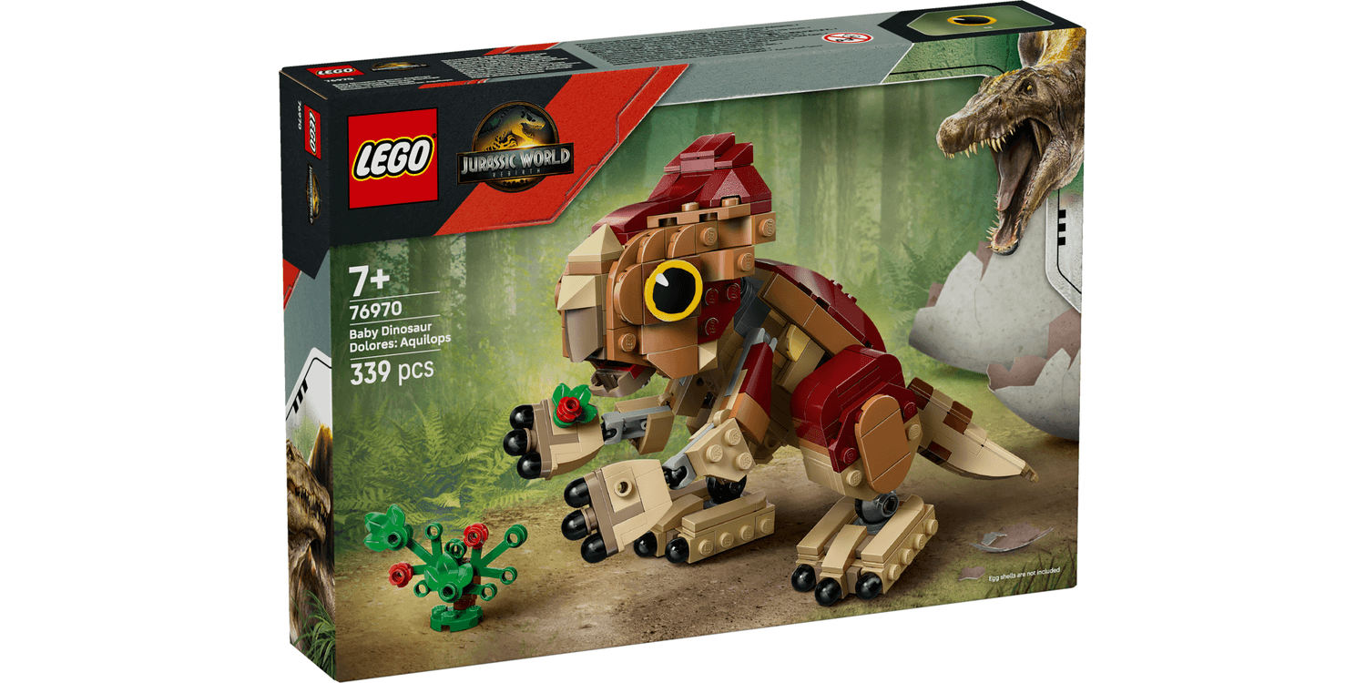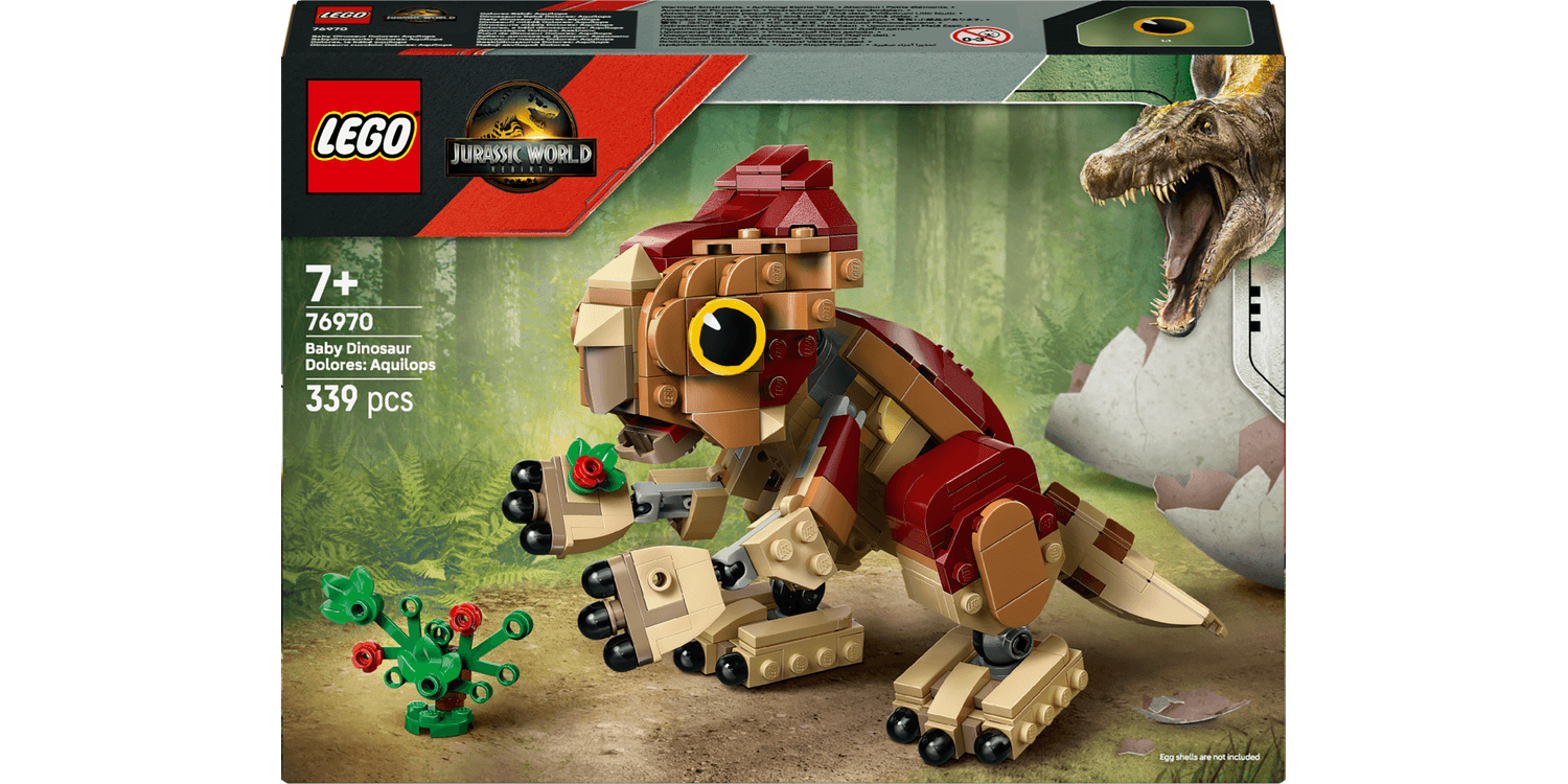 Adventures await kids and fans who want to start or add to their dinosaur collection with this fun LEGO Jurassic World Baby Dinosaur Dolores: Aquilops (76970) dinosaur toy for 7+ year old girls and boys. This play-and-display Jurassic World toy features a brick-built baby Aquilops dinosaur figure for kids and a buildable plant with flowers. The Baby Dolores dino toy has a movable head, arms and legs that encourage a range of poses, plus a moving tail and an opening jaw to show her delight when she eats her plant meal. Once playtime is over for the day, this cute toy dinosaur figure can be placed on a shelf or desk to show it off. This dinosaur gift for 7+ year old girls and boys is great for imaginative play and can work with other LEGO Jurassic World building sets (sold separately). The role-play toy for kids lets them recreate scenes from the film or indulge in their passion for different Jurassic World dinosaurs.
