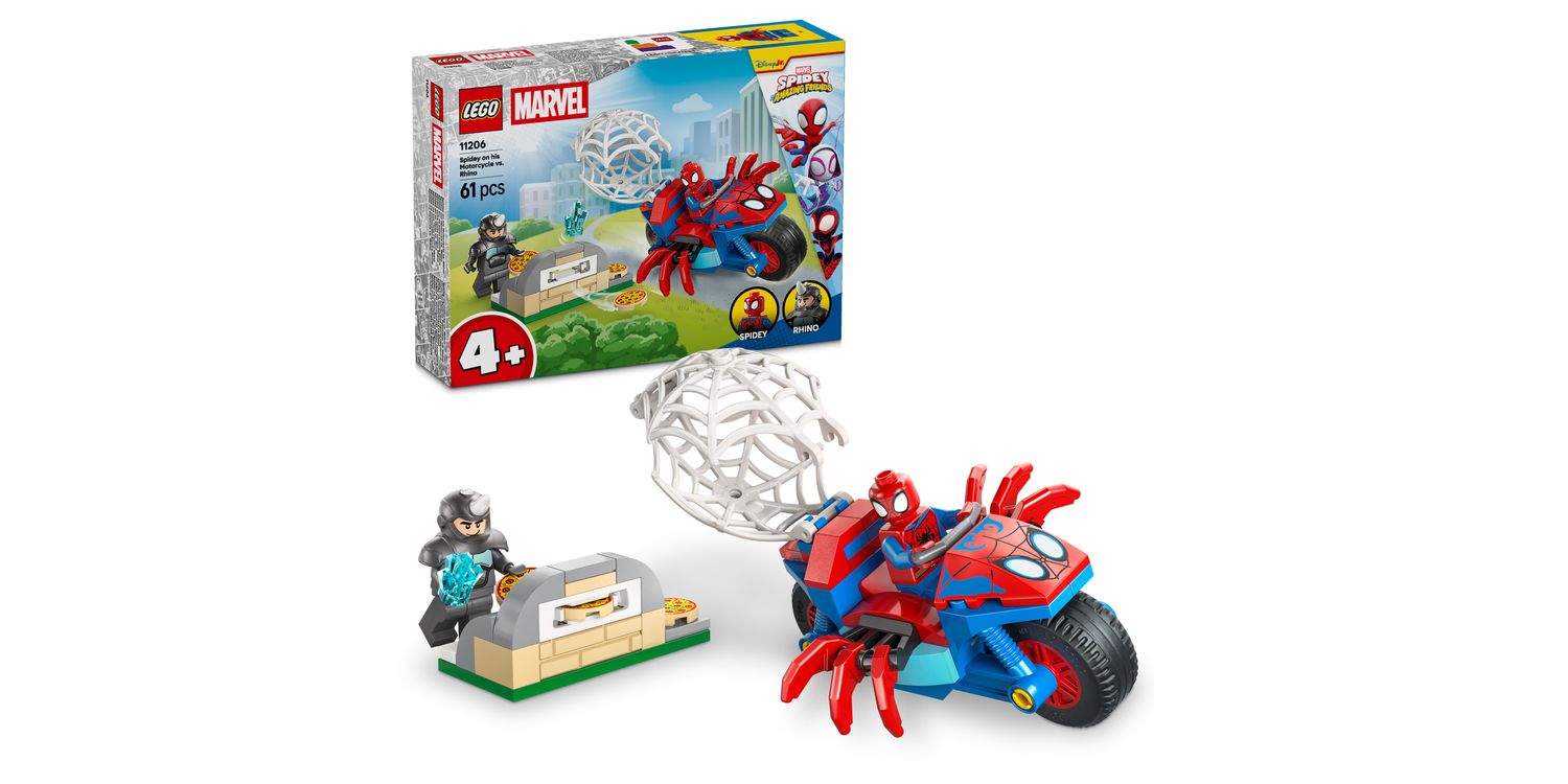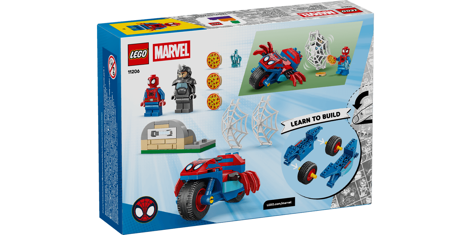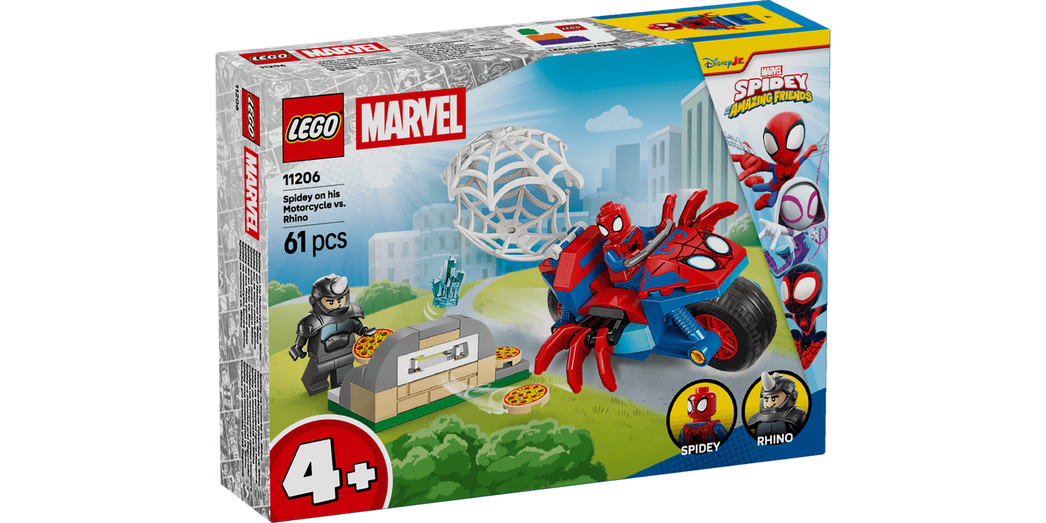 Put Super Hero action into kids’ hands with this Spidey on his Motorcycle vs. Rhino (11206) building toy for boys and girls aged 4 years old and over.