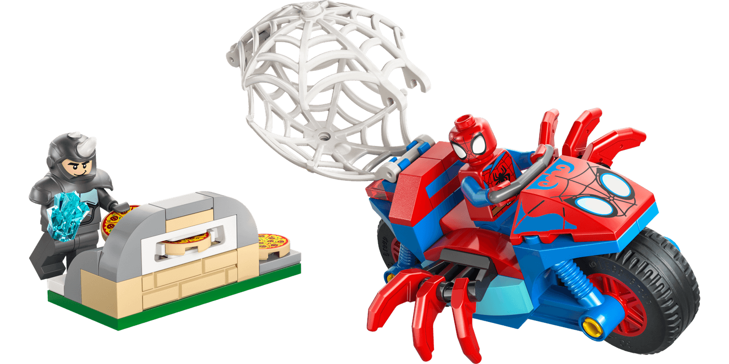 With Spidey and Rhino minifigures and a spider-shaped motorcycle, this Spidey building set is a great way to help kids develop their creative skills. Kids help Spidey retrieve a stolen blue gem, dodge flying pizzas launched from Rhino’s pizza oven shooter, and capture Rhino in a giant spiderweb trap – which also fits onto the motorcycle. Designed with budding builders in mind, this building set is packed with details to inspire kids with endless imaginative play. It makes a great birthday or any-time gift for fans of Spidey And His Amazing Friends. It comes with colourful pictorial instructions, large Starter Bricks and separate bags containing 1 buildable model per bag to make construction fast and fun. With the LEGO® Builder app, kids can zoom, rotate in 3D and track progress with easy-to-follow digital instructions.