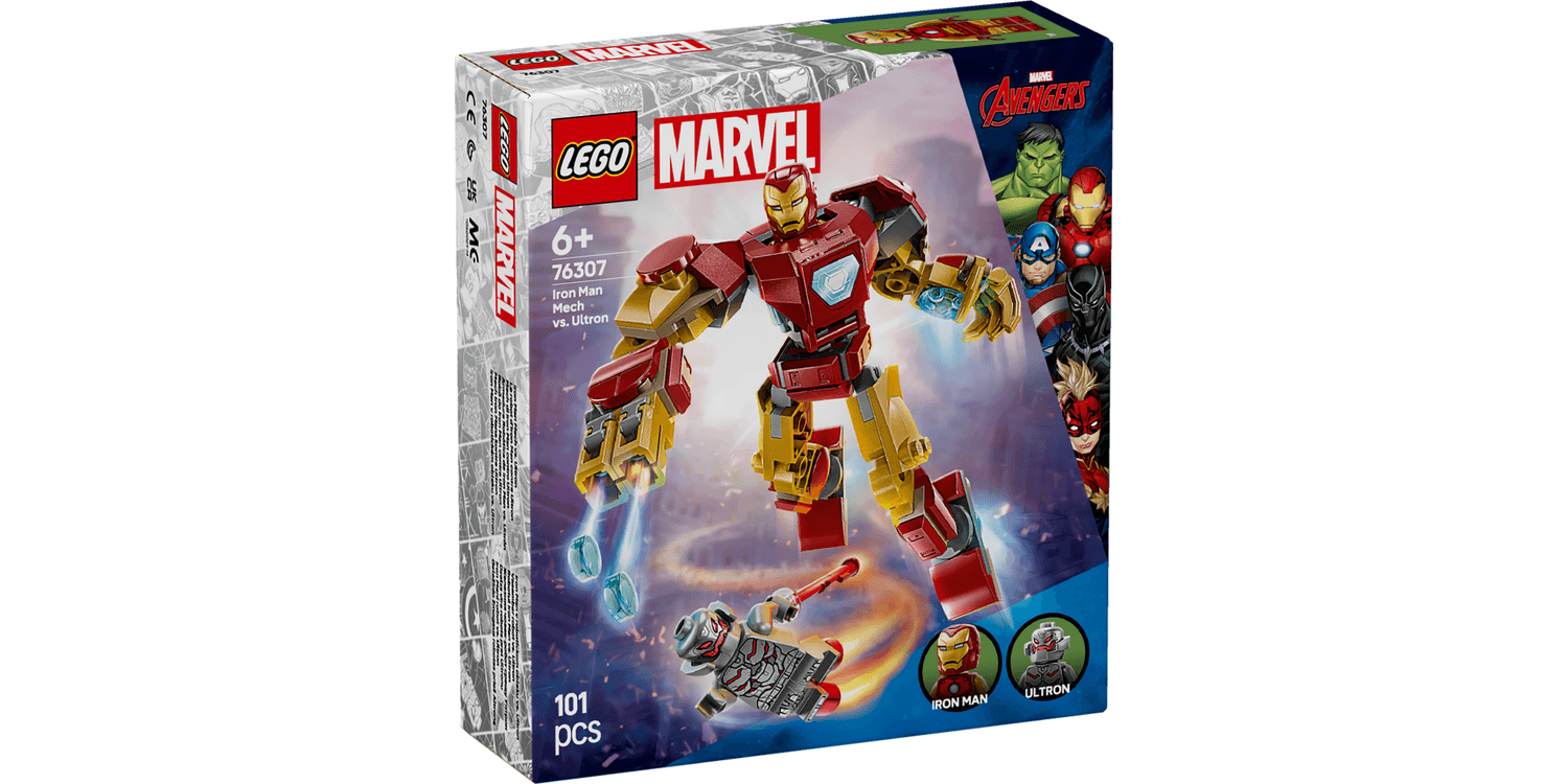 Iron Man Mech vs. Ultron (76307) is an action-packed LEGO Marvel building toy for 6 plus year old boys, girls and kids who love Super Heroes. This building toy set includes 2 LEGO Marvel minifigures: Iron Man with a flip-open helmet and reversible head showing alternative expressions, and Ultron holding a laser beam element. The Iron Man mech figure has movable arms, legs and fingers and a stud-shooter at the end of its right arm, plus the torso opens to reveal a cockpit where the Iron Man minifigure can sit. For added digital fun, builders can zoom in, rotate models in 3D and track their progress using the fun, intuitive LEGO Builder app. LEGO Marvel building toy sets encourage fans to recreate exciting scenes with the Avengers and other iconic characters from the Marvel Cinematic Universe. This LEGO mech set makes a great Marvel birthday gift for 6 plus year old boys and girls.