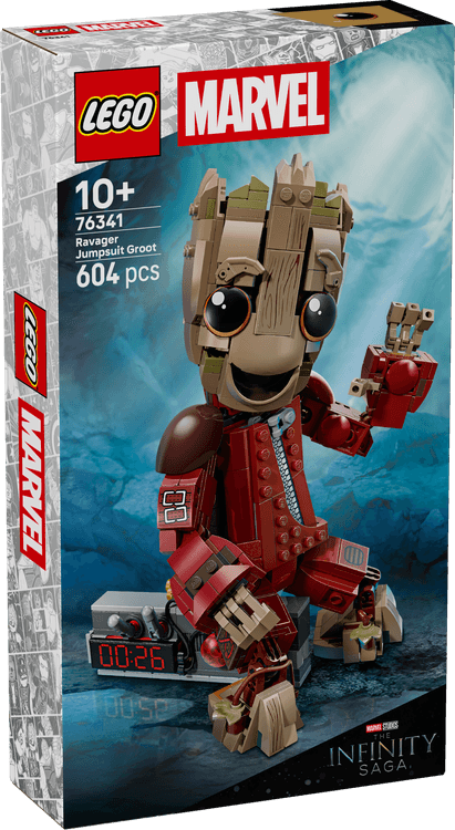 Bring the captivating Baby Groot to life with Ravager Jumpsuit Groot (76341), a fully jointed figure for dynamic display and role-play action.