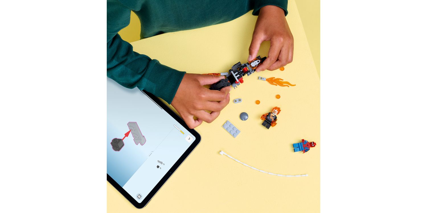 The LEGO® ǀ Marvel building set’s battle-ready motorcycle and 2 dynamic Spider-Man and Ghost Rider minifigures fuel kids’ imaginative play. The Ghost Rider minifigure is depicted as a skeleton with flames streaming from his hands and head. His iconic motorcycle features 2 flaming exhaust pipes and 2 built-in stud shooters. The Spider-Man minifigure’s web-rope attaches to the motorcycle, offering endless role-play possibilities as the characters battle on and off the high-octane vehicle. This building set makes a great gift idea for the birthdays of young Super Heroes, LEGO builders and fans of collectable Spider-Man merchandise. And, with the LEGO Builder app, kids can build with confidence – zoom, rotate in 3D and track progress with easy-to-follow digital instructions.