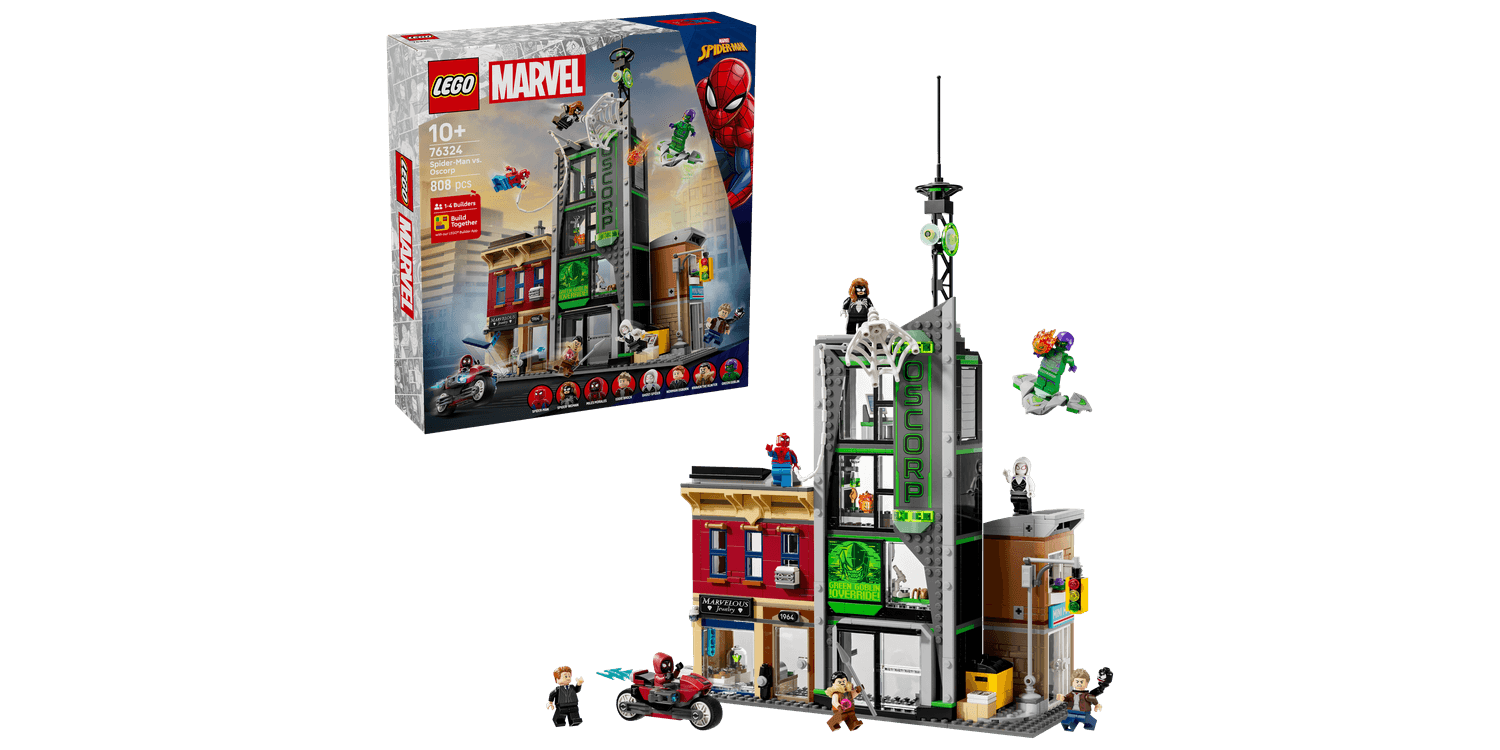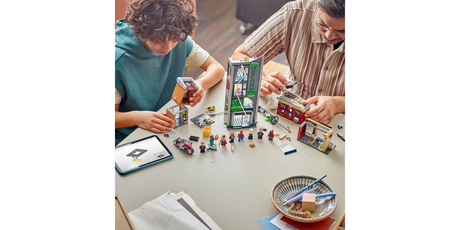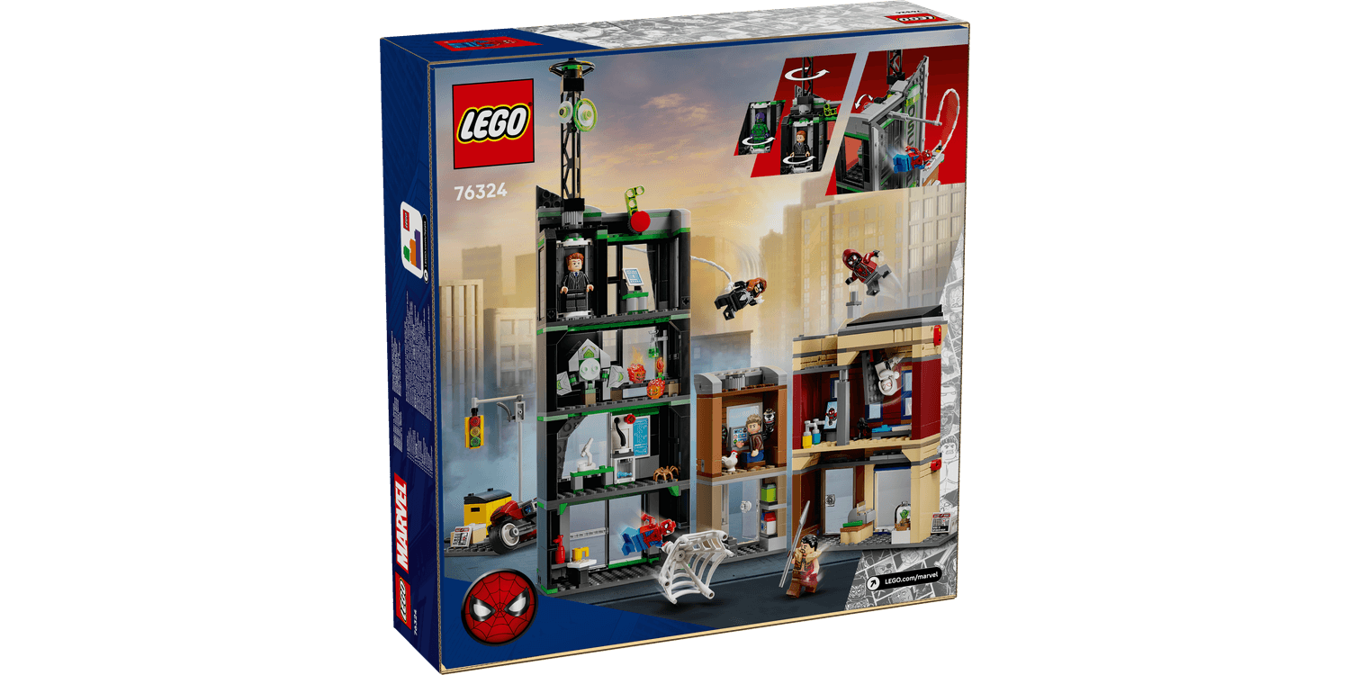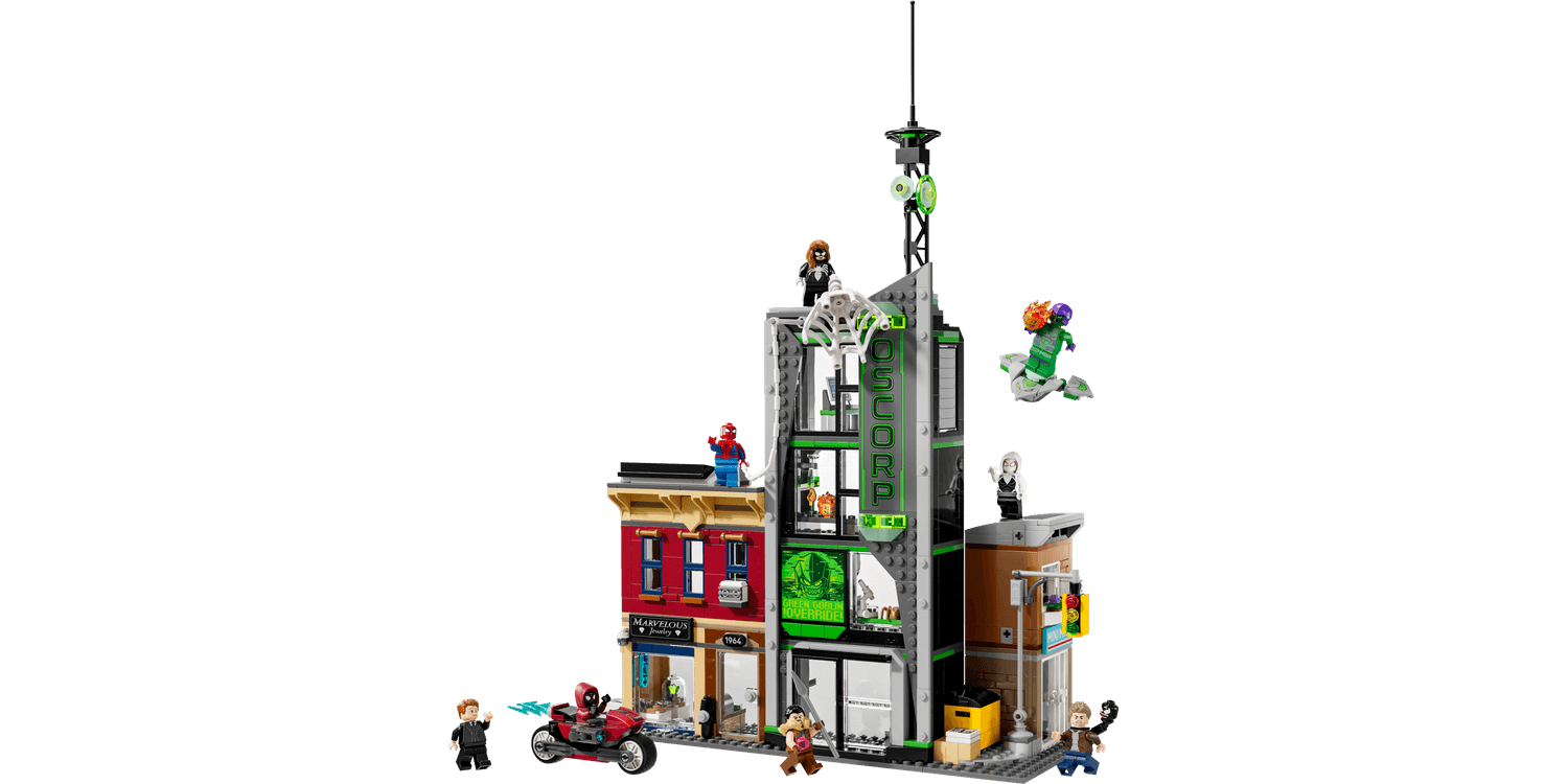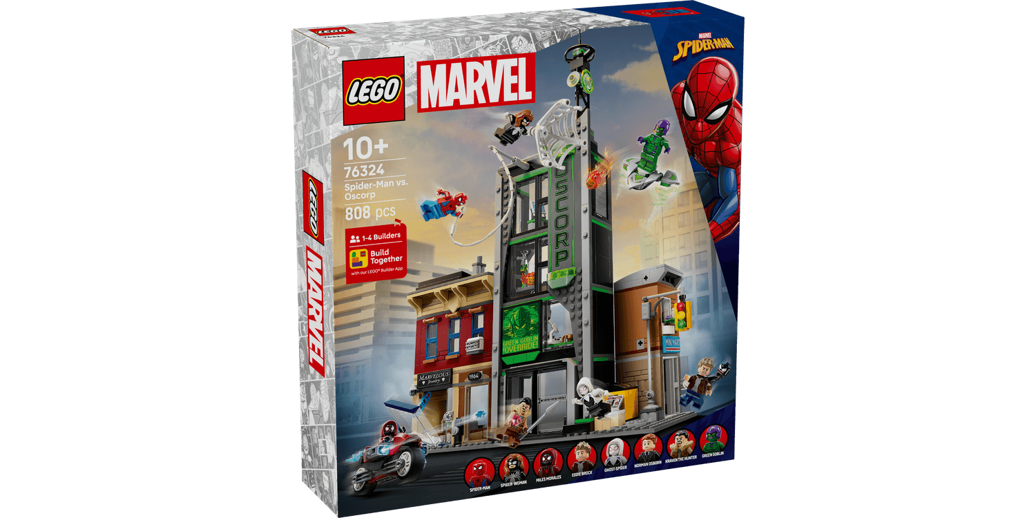 The LEGO ǀ Marvel Spider-Man vs. Oscorp (76324) building toy for 10+ year old boys and girls is a fun build-play-and-display set that’s bursting with Super Hero action, iconic characters and famous locations. The street scene in this LEGO | Marvel set comprises 3 separate buildings: Miles Morales’s apartment with a jewellery shop underneath, the Oscorp building, and Venom’s apartment with a newsagent below. Each room is furnished with relevant equipment and accessories. Eight LEGO Marvel minifigures from the films ensure endless web-slinging action: Spider-Man, Spider-Woman, Miles Morales with a motorbike toy, Eddie Brock, Ghost-Spider, Norman Osborn, Kraven the Hunter and Green Goblin with his glider. Transparent sticks allow kids to position and pose characters with realistic ease. Building together on the LEGO Builder app lets friends and family share the creative fun This multi-model city scene makes an impressive Marvel gift 10+ year old boys, girls and older fans of Super Heroes and Marvel collectibles.