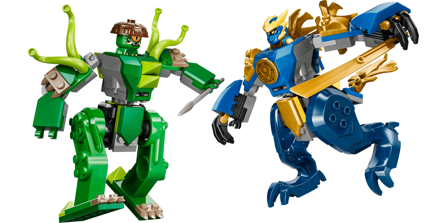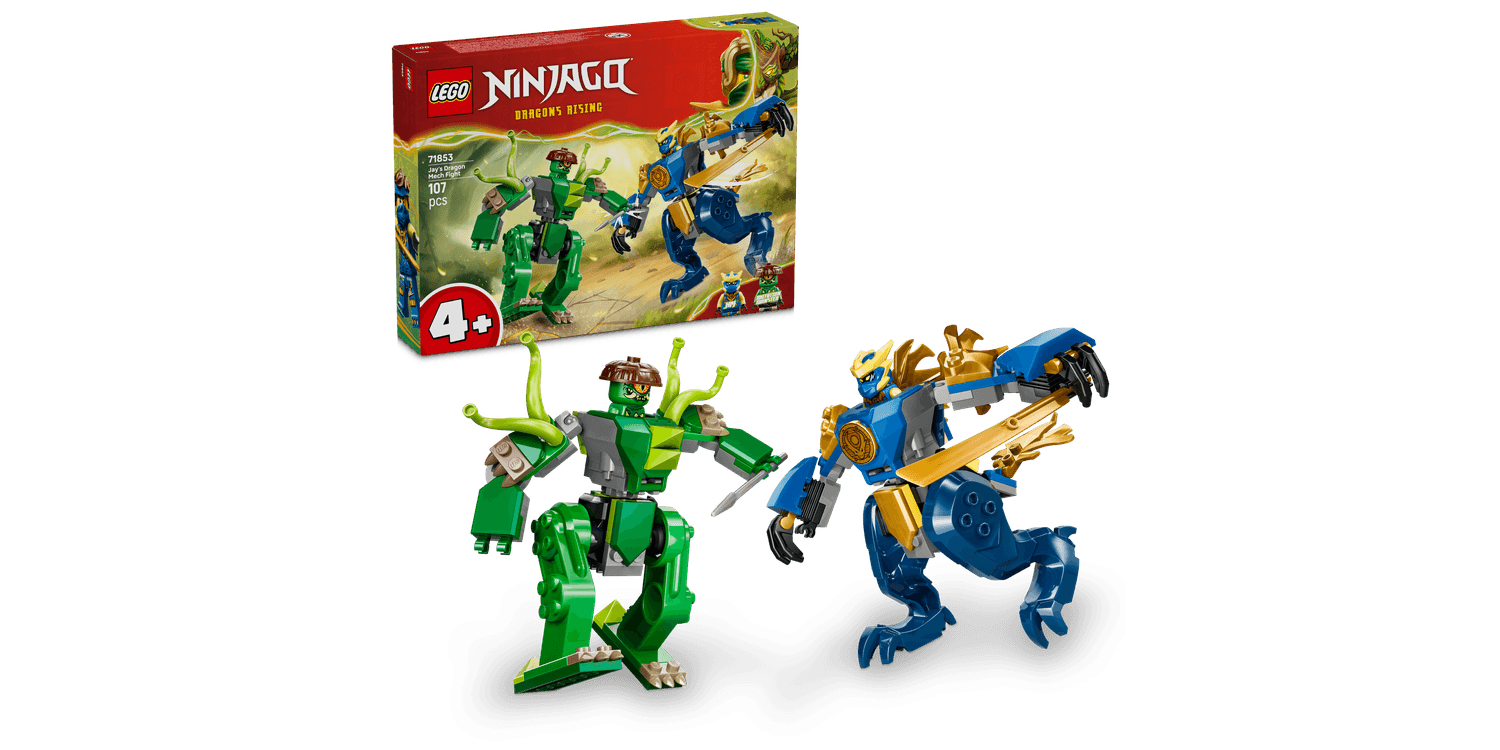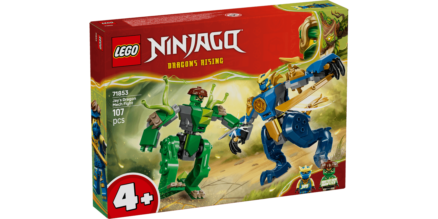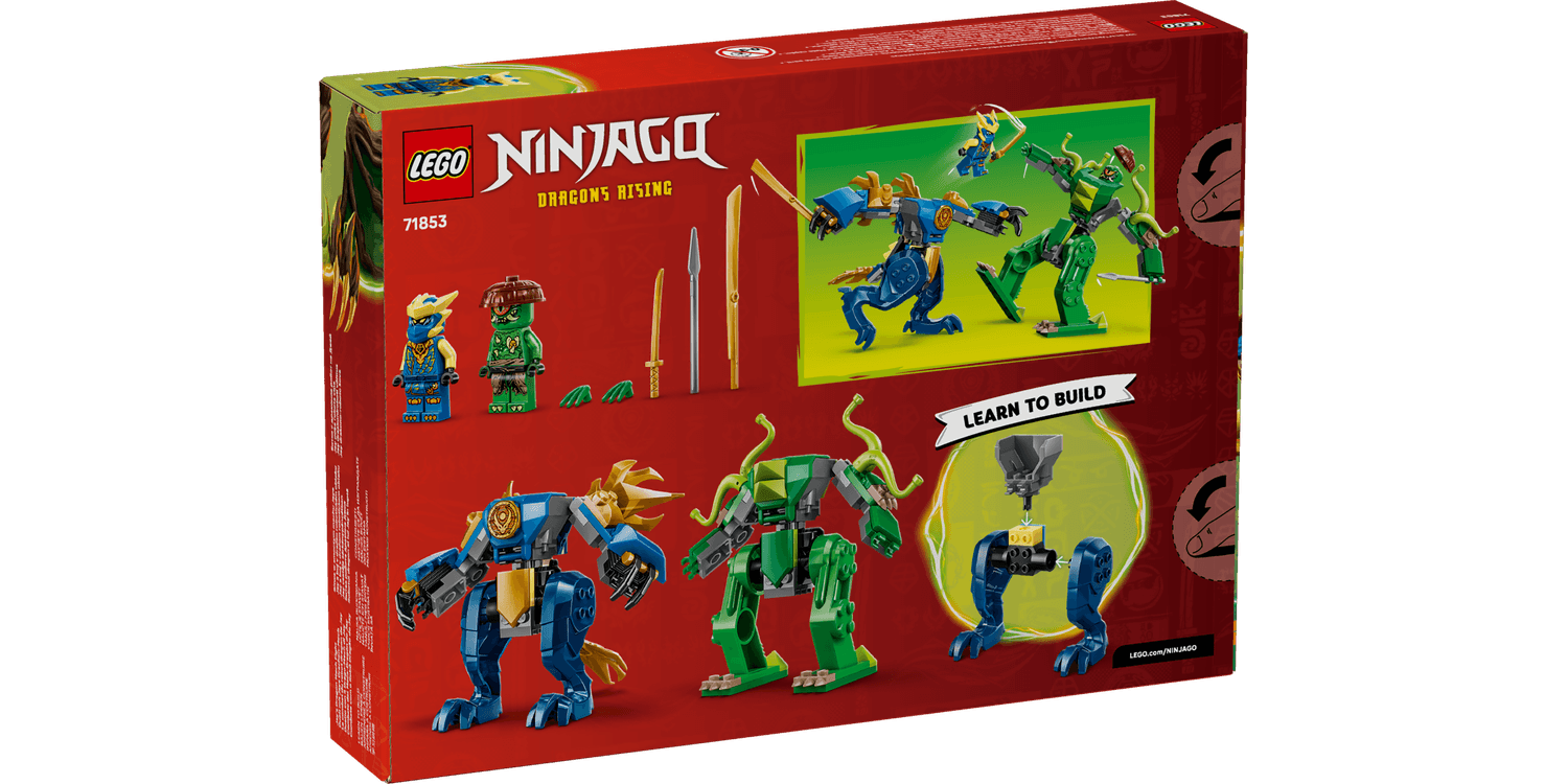 The LEGO® NINJAGO Jay’s Dragon Mech Fight (71853) adventure toy comes packed with 2 mechs and 2 minifigures. Jay’s dragon mech has an opening cockpit for his minifigure and posable tail, wings, arms, legs, body and fingers, while the Mutation Monster’s battle mech has an opening cockpit for his minifigure and posable tentacles, arms, legs and torso. The set also comes with 4 interchangeable weapons for enhanced play value: 2 swords, a spear and a set of claws. This ninja toy has been designed to provide a fun experience for children aged 4 and over who are discovering the joy of building with LEGO bricks. The adventure toy comes with a Starter Brick – a partly constructed base that gets kids building quickly and with confidence.
