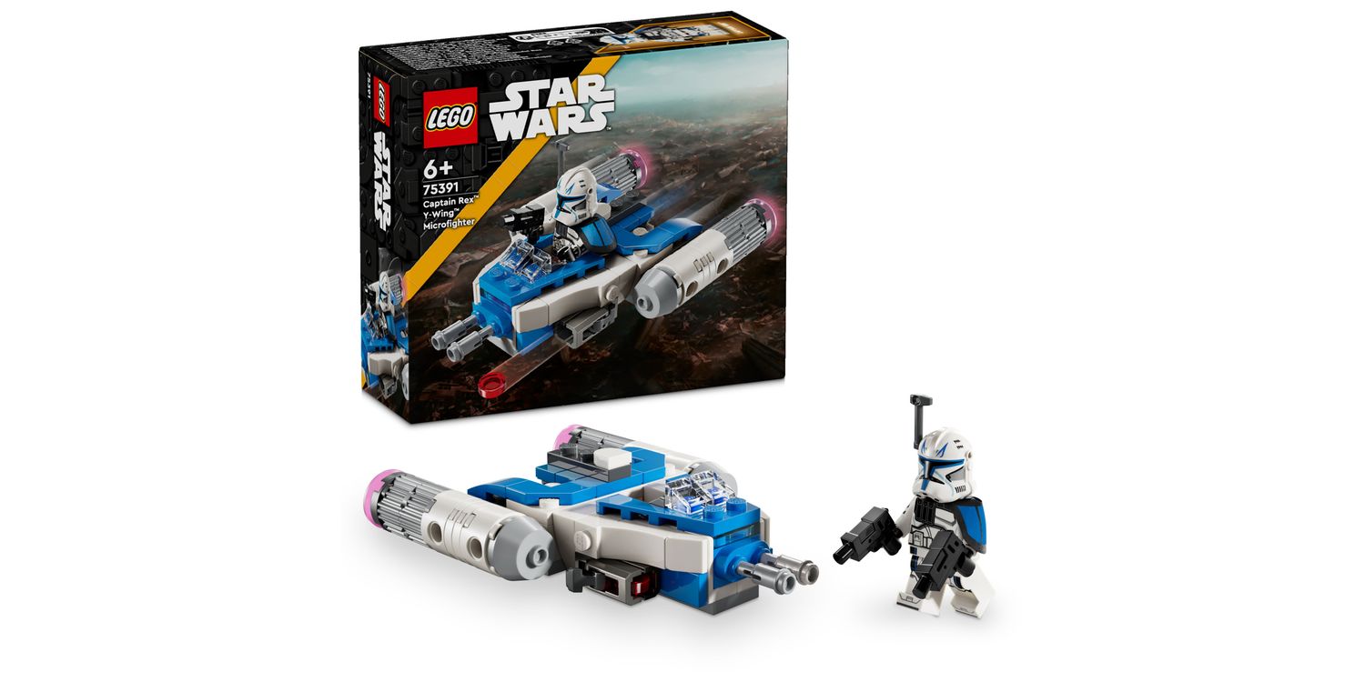 Let kids team up with a popular Star Wars: The Clone Wars character on playtime missions with this LEGO brick-built Captain Rex Y-Wing Microfighter (75391) starship toy for 6-plus-year-old boys and girls. This buildable Star Wars vehicle toy features the first-ever LEGO Star Wars set to contain a model of Captain Rex’s Y-wing. Designed to be easy to build so the action starts fast, this miniature version of the iconic Star Wars starfighter has a minifigure cockpit and 2 stud shooters, and the included Captain Rex LEGO Star Wars minifigure comes with 2 blasters. Add another dimension to your child’s creative experience with the LEGO Builder app, featuring instructions and digital zoom and rotate viewing tools to help them build with confidence. This small set is part of a fun collectible series of quick-build LEGO Star Wars Microfighters (sold separately), which can be matched up for even more brick-built action adventures. An out-of-this-world Star Wars gift for 6-plus-year-old boys and girls.