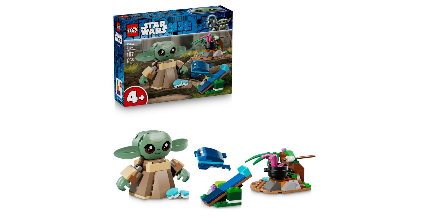 Give kids aged 4 plus an inspiring first build-and-play experience in the LEGO® Star Wars™ universe with this toy building set: Grogu’s Homestead (75443).