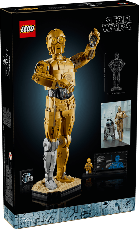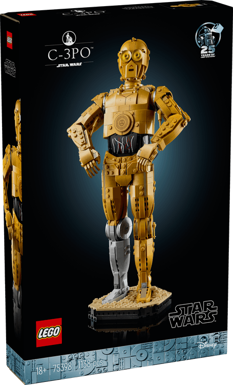 Build and display this intricately detailed LEGO Star Wars C-3PO figure (75398) building set for adults. A nostalgic Star Wars-themed gift idea for men, women and fans of the classic Star Wars saga, this collectible set offers an immersive and rewarding creative challenge. Recreate every detail of the beloved Star Wars character and turn his head or move his arms to create familiar poses. This model kit for adults to build also features a stand with a C-3PO information plaque and space for the included C-3PO LEGO Star Wars minifigure, plus a LEGO Star Wars 25th anniversary brick to complete an eye-catching centrepiece. Enjoy an intuitive building experience with the LEGO Builder app, where you can zoom in and rotate your construction model in 3D, track your progress and save all your sets in one place. To add to this striking display piece, show off your creation alongside LEGO Star Wars R2-D2 (set 75379, sold separately) and simply reconfigure one of C-3PO’s arms to recreate the way he pats his old friend on the head.