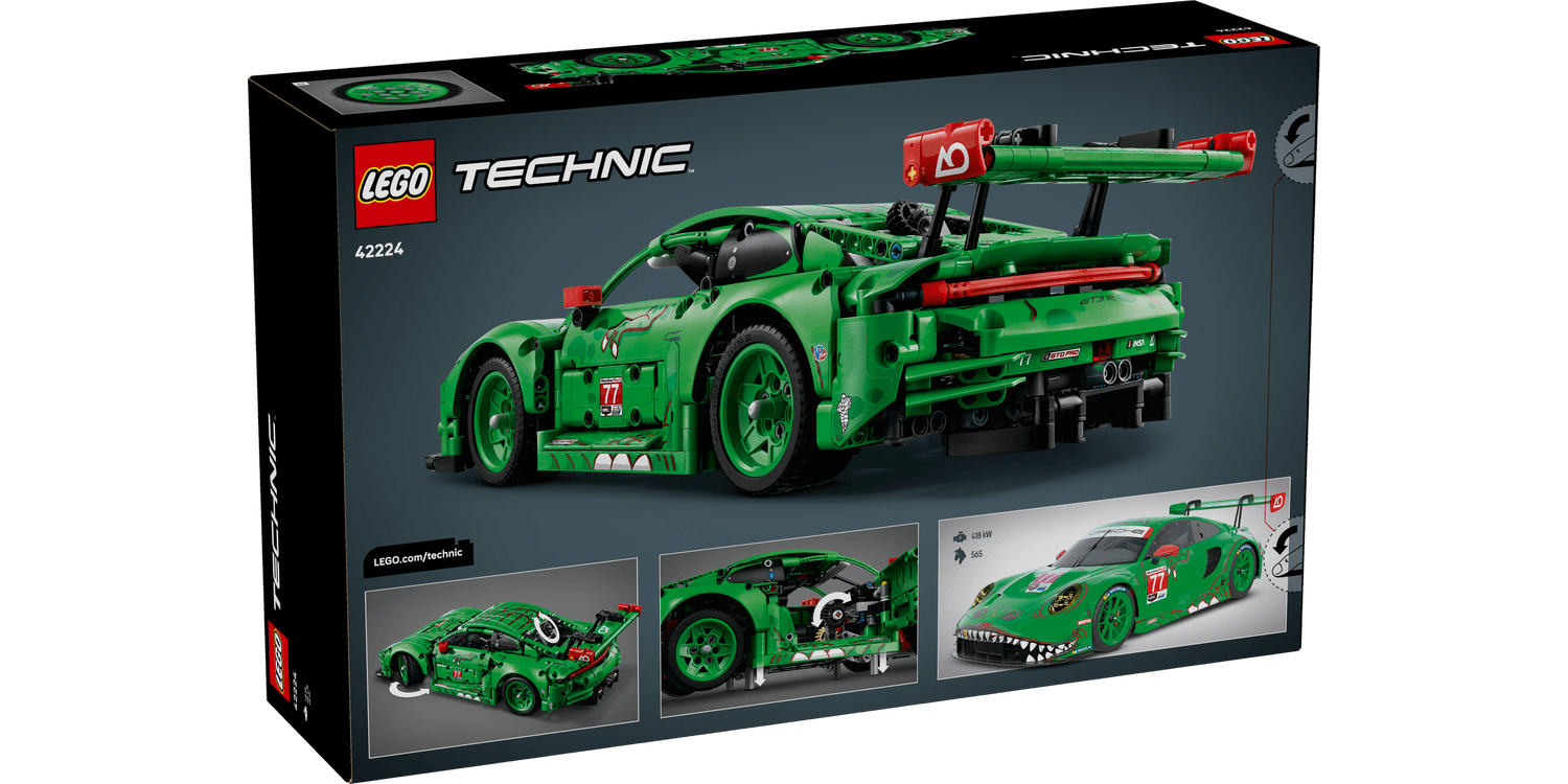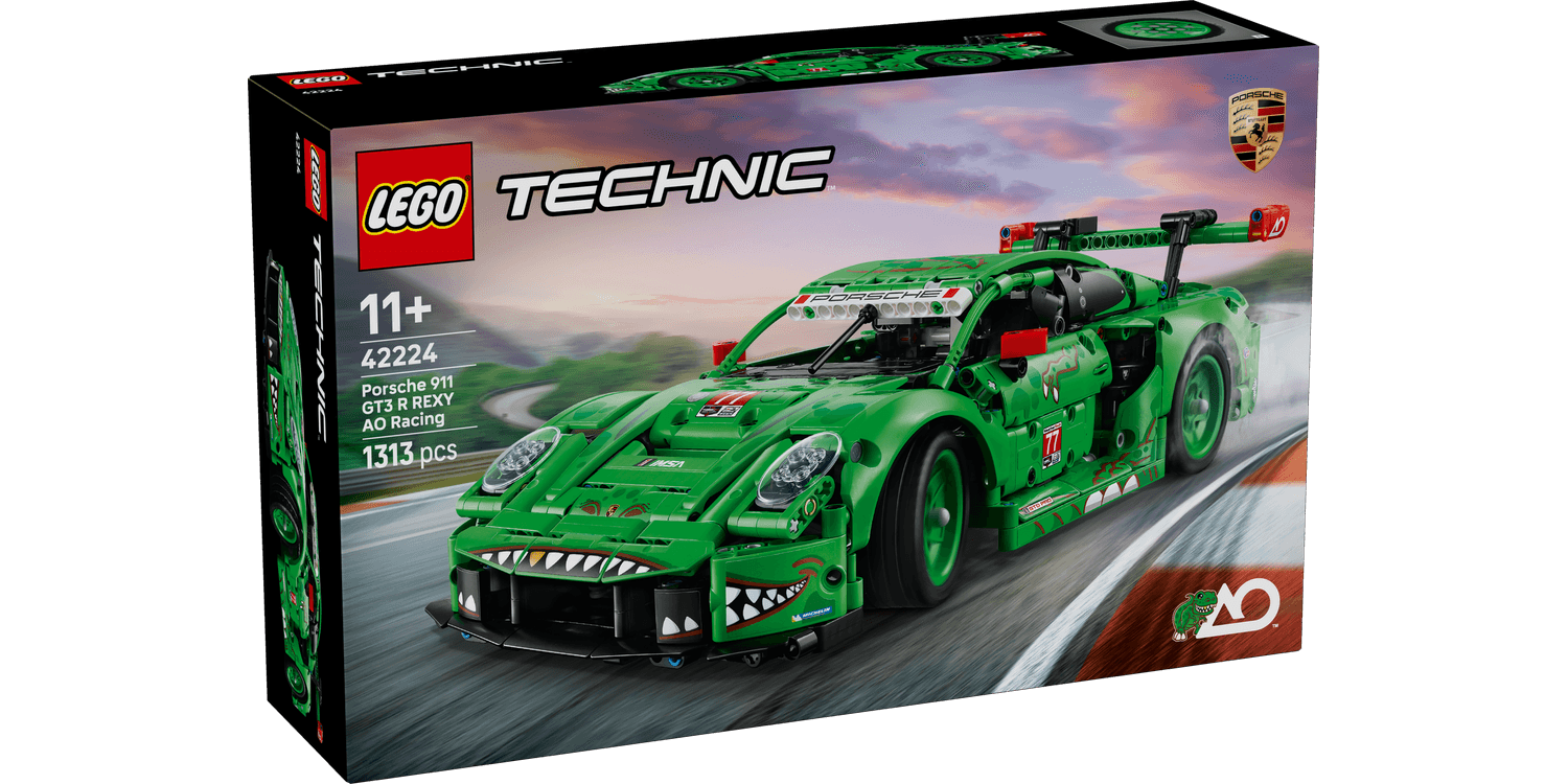 Packed with cool details, the LEGO Technic Porsche 911 GT3 R REXY AO Racing Car (42224) is made for kids who love fast-action play. With this car model building kit, kids can take control using the steering knob on top, then check out the working suspension on all 4 wheels, the rear wheel drive with differential, 6-cylinder boxer engine with correct firing order, opening doors and boot and synchronised air jacks. And with its fierce T. rex-themed livery, this model car looks just as awesome on display as it does on the racetrack. This building set makes a fun birthday gift for 11+ year old boys, girls and teenage car enthusiasts. LEGO Technic car model kits feature realistic movements and mechanisms that introduce young LEGO builders to the universe of engineering in an approachable way. Kids can build with confidence using the LEGO Builder app – zoom, rotate in 3D and track progress with easy-to-follow digital instructions.