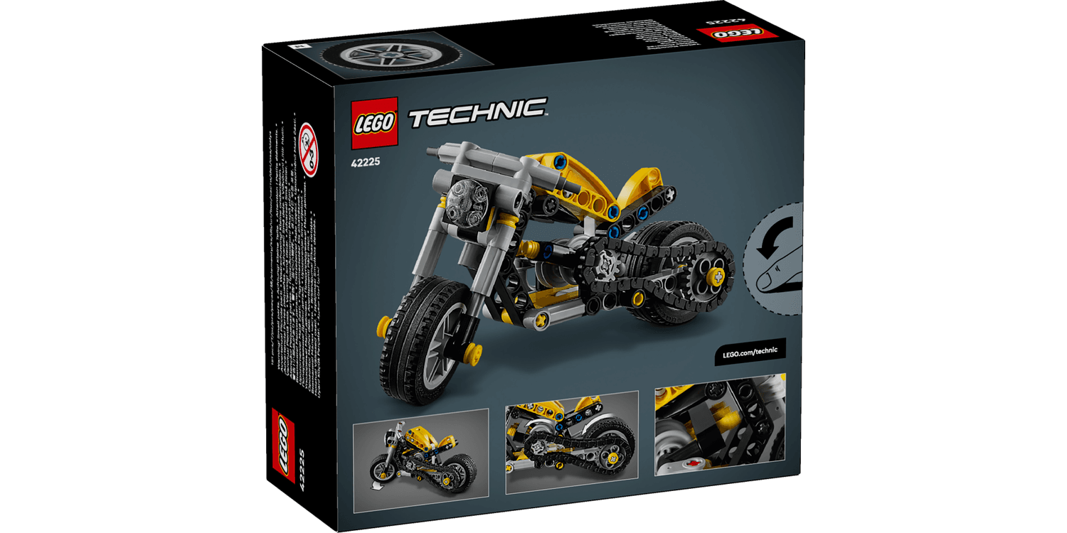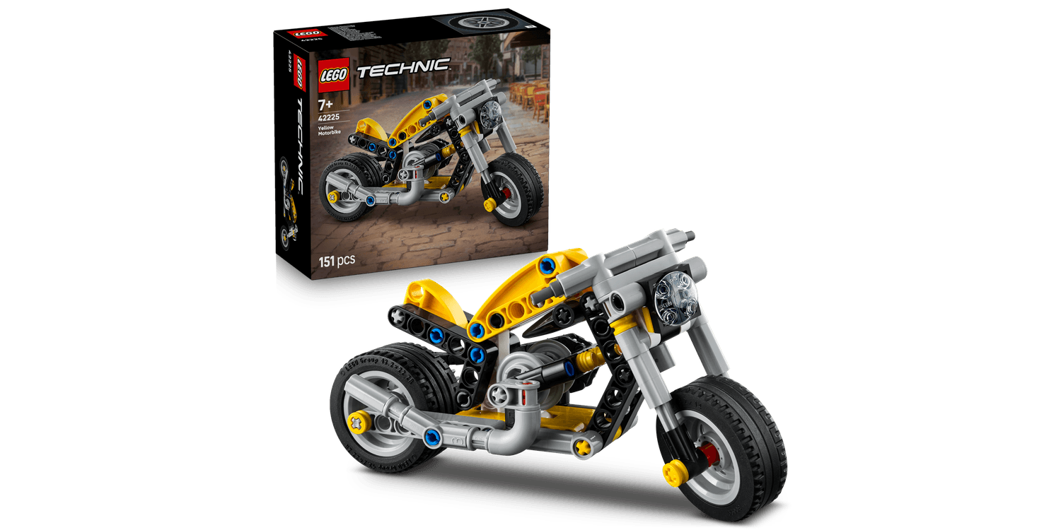 Zoom into play with this LEGO Technic Yellow Motorbike (42225) toy for 7+ year old boys and girls.