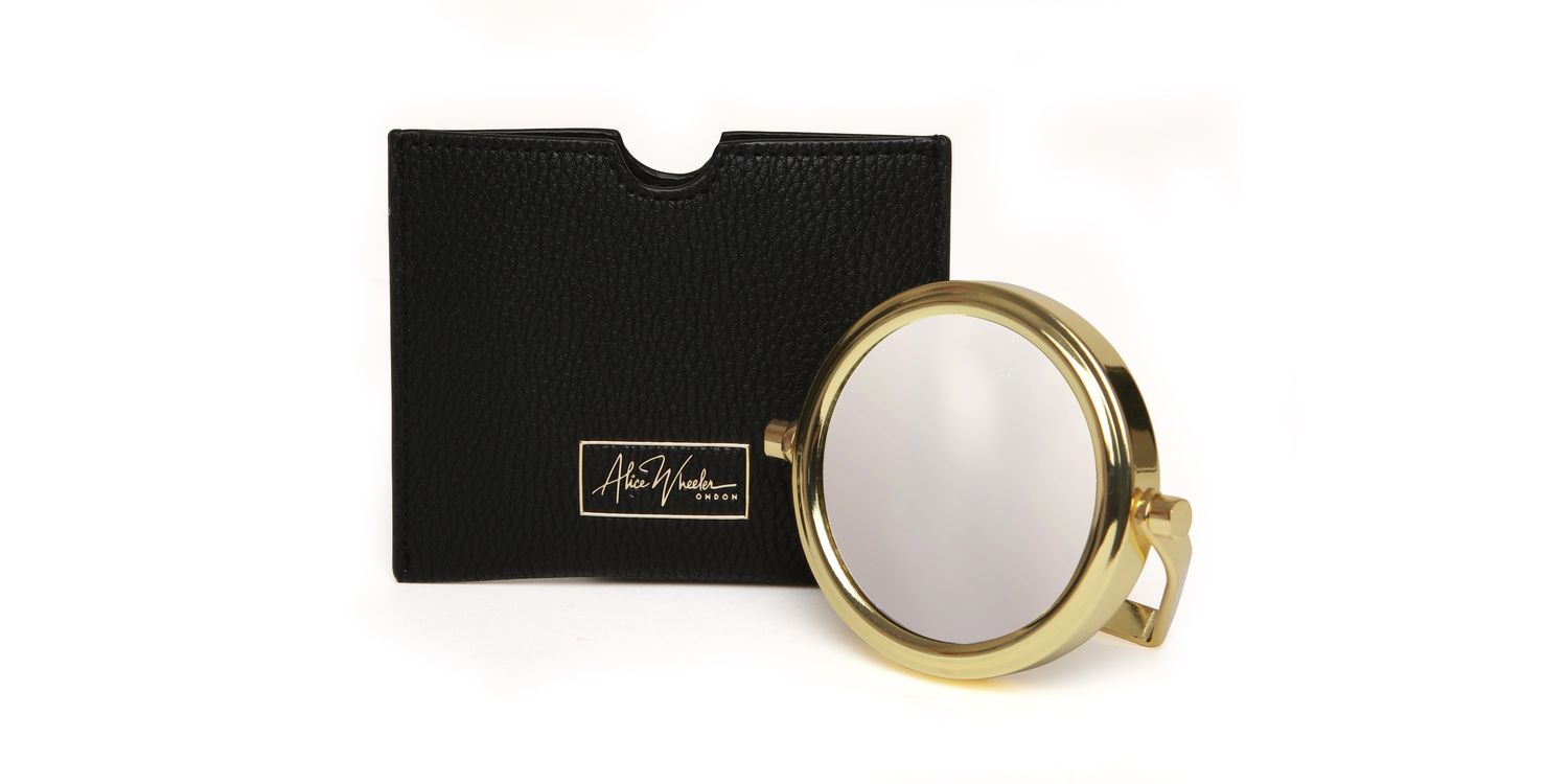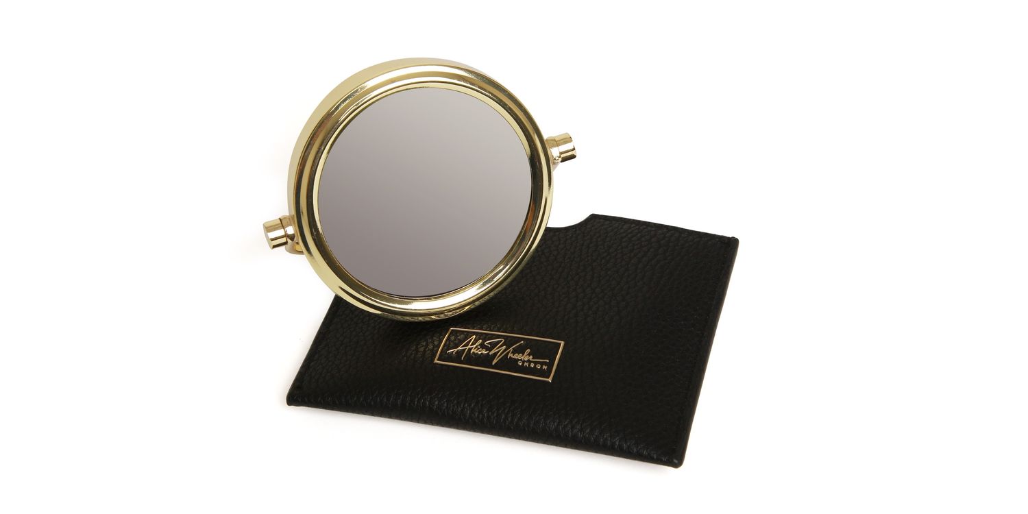 This double-sided gold mirror has a 1x and a 7x magnifying side, so you can check your makeup and hair with ease. It folds flat and fits neatly into its textured vegan leather pouch, which is enhanced with our fabulous signature logo. You can choose from a variety of colours to match your handbag and style.