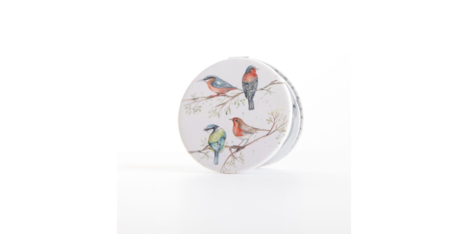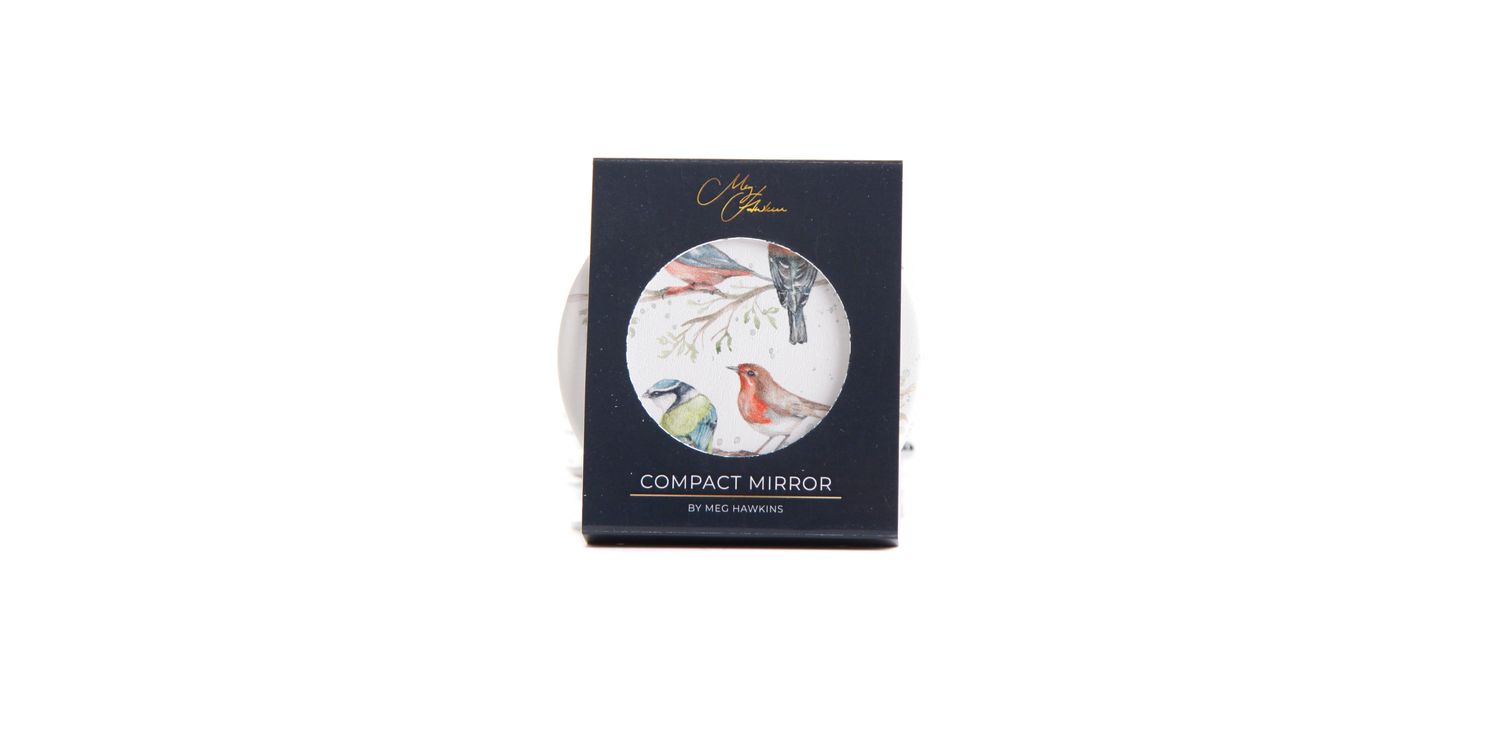Meg Hawkins - British Birds Design Watercolour Compact Mirror. Birds Design Compact Mirror by Meg Hawkins. Featuring Meg Hawkins' stunning watercolour artwork of British birds, the beautifully designed packaging makes it a perfect gift for nature lovers. Compact and travel-friendly with a magnified side.