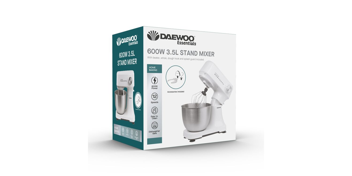 Includes 3.5L bowl, beater, whisk & dough hook