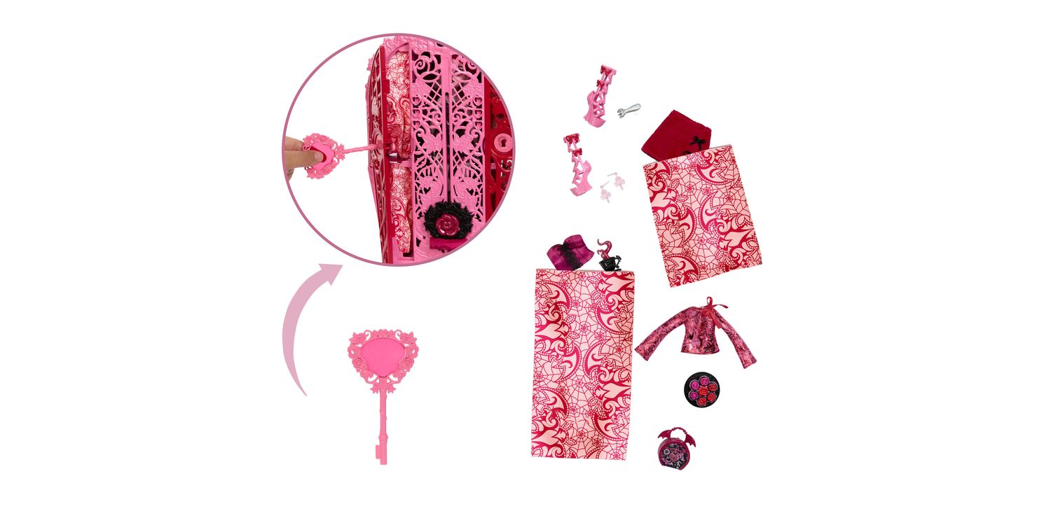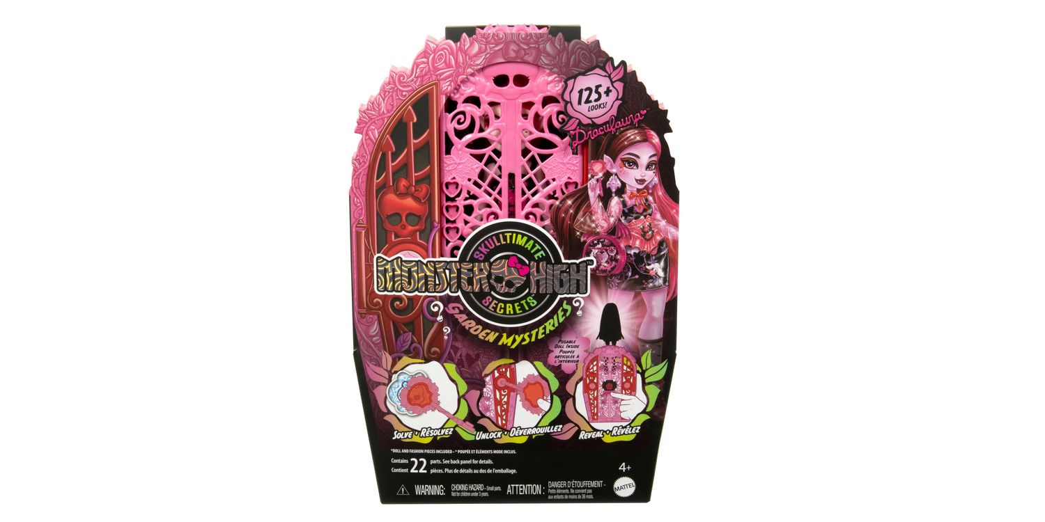 Solve the mystery, unlock the gates of Monster High, and reveal a Monster High doll with Skulltimate Secrets: Garden Mysteries! Kids can play spooky detective by searching for clues on the map with the 'magic' magnifying glass key. Along the way they'll discover 19+ surprises for an extraordin-eerie unboxing experience! Once playtime is over, kids ages 4 years old and up can stow the included doll, clothing, and accessories inside the creeperific closet, which is perfect for both storytelling and storage! Each sold separately, subject to availability. Fully articulated. Dolls cannot stand alone. Colours and decorations may vary.