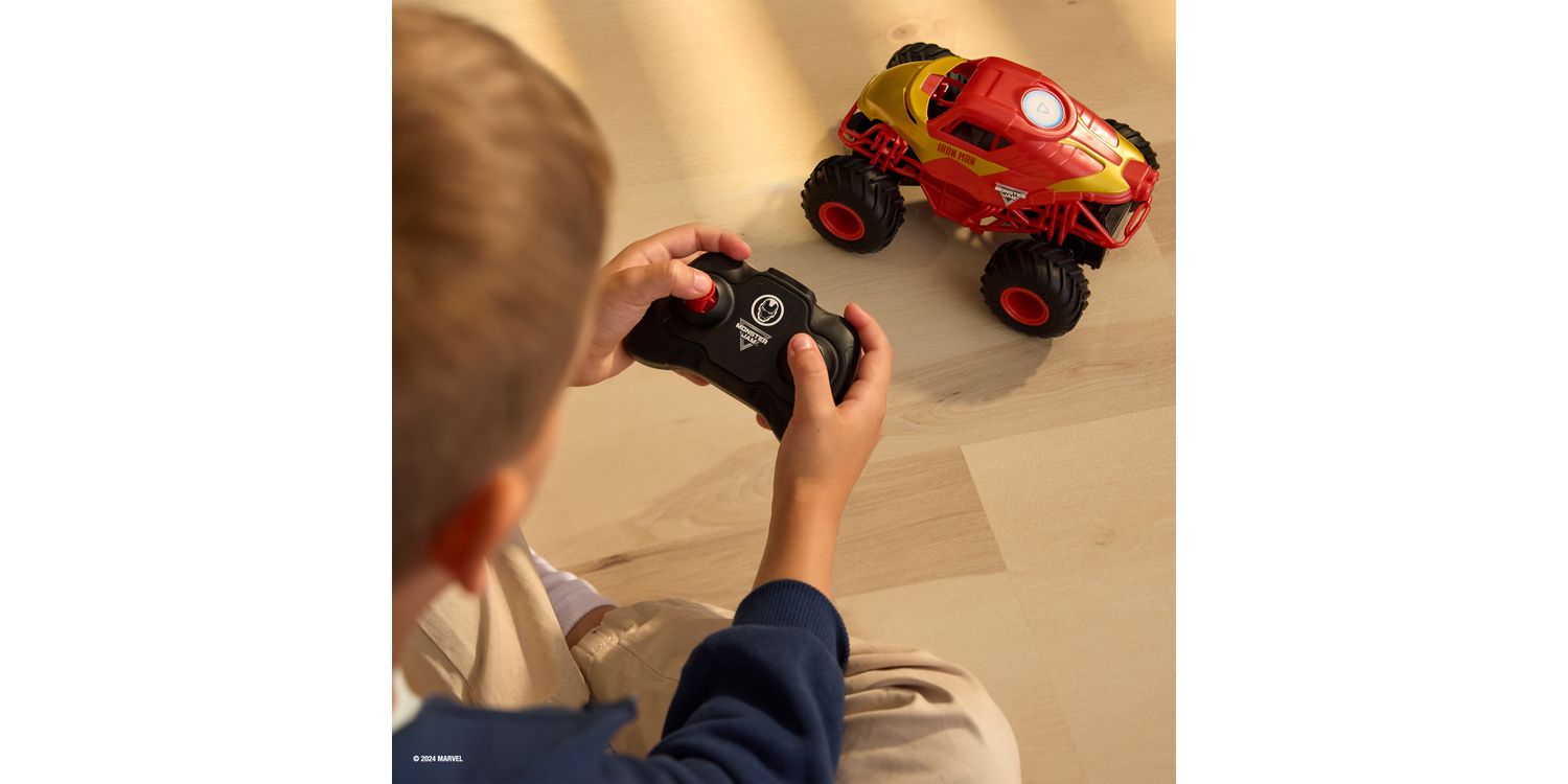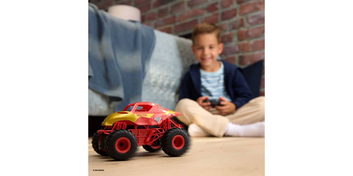 Dive into heroic playtime with the Iron Man RC Monster Truck from Monster Jam. This bright red and gold truck brings the excitement of Monster Jam into your home, designed for ease of use and heroic adventures. Kids can feel like they’re part of Iron Man’s world, driving their very own monster truck with a kid-friendly remote that puts them in the driver’s seat. The truck is as durable as it is eye-catching, ready to tackle any mission kids can dream up. With the ability to race multiple trucks together, it’s perfect for play dates and Monster Jam parties. This makes for a great alternative to an RC car, RC plane, remote control boat, remote control helicopter and other RC trucks. Whether zooming across the living room or in the backyard, this truck is built for imaginative play. Gift the joy of Monster Jam and the wonder of Marvel with this Iron Man RC Monster Truck.