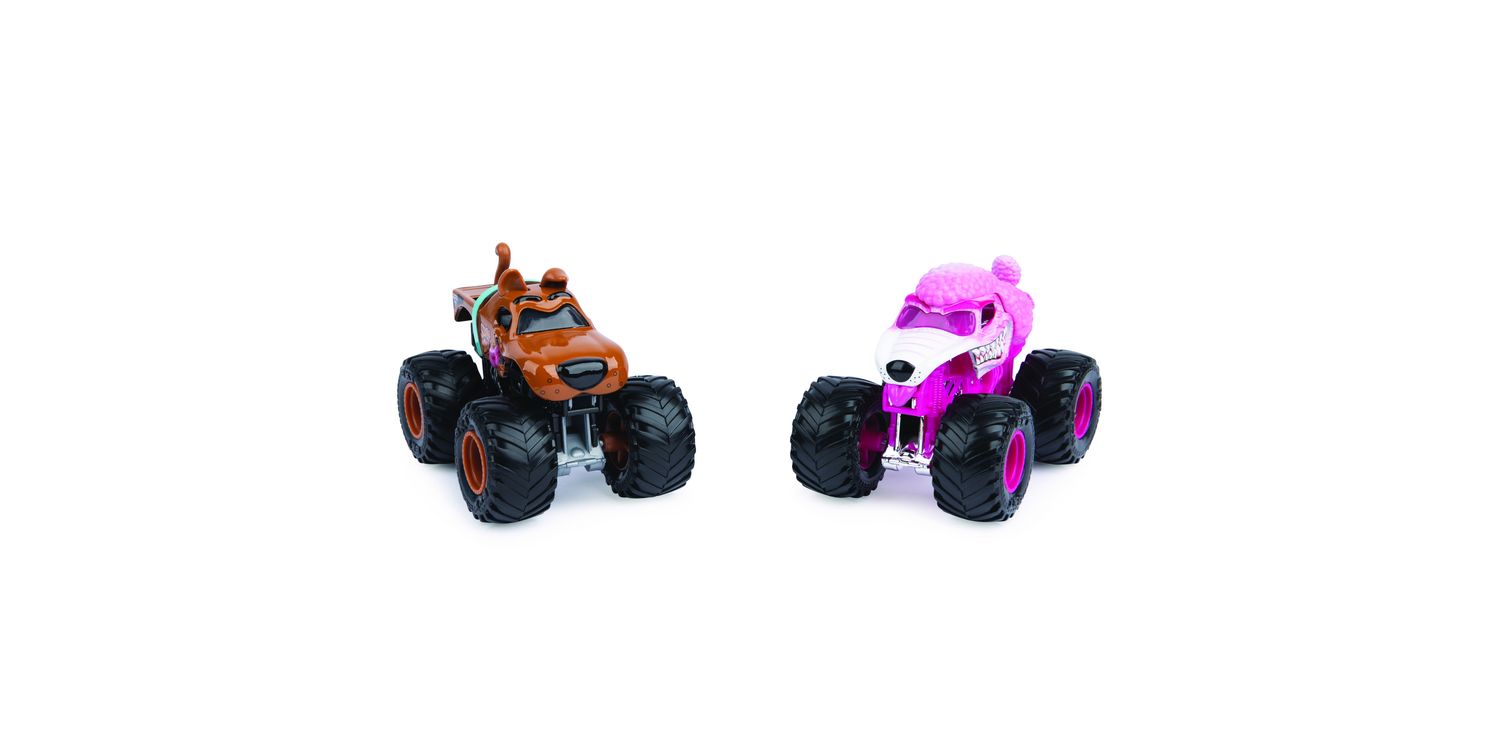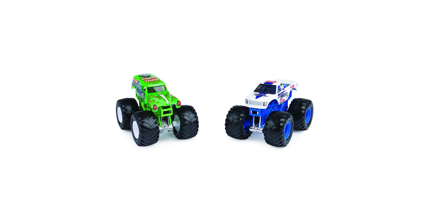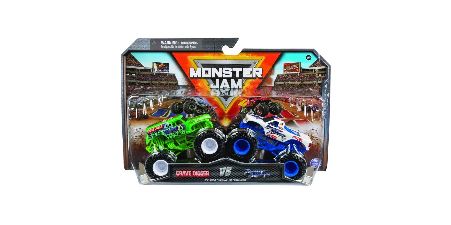 Get ready for epic showdowns with the official Monster Jam 1:64 scale die-cast trucks 2-Packs. Every 2-Pack features match-ups of the most popular and sought-after Monster Jam monster trucks, like Grave Digger vs. Higher Education, Bulldozer vs. Racing Stripes, Dragon vs. Yeti and more.