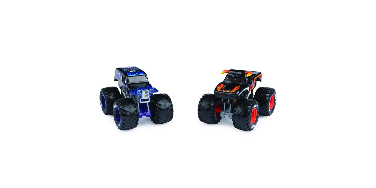 Includes: 2 Monster Jam 1:64 Scale Monster Trucks