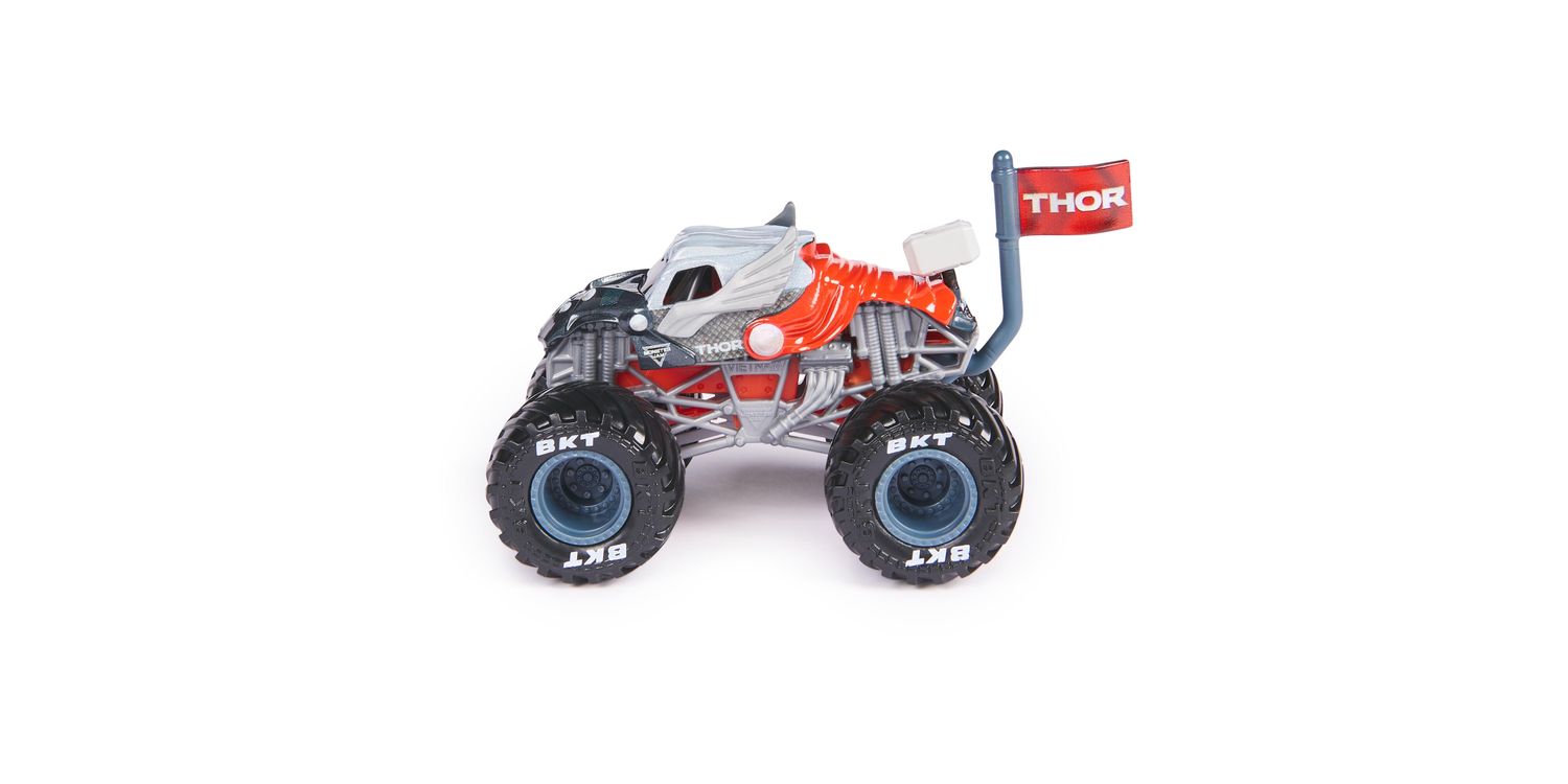 Step into the action-packed universe where Monster Jam roars and Marvel superheroes soar. The 1:64 scale die-cast Marvel Monster Jam truck series isn’t just a collection. It’s a high-octane homage to the Marvel Universe. These monster trucks, emblazoned with the symbols and colours of icons such as Thor, Captain America, Iron Man, Black Panther and Spider-Man, bring home the spectacle of superpowers and stadium stunts. Boasting authentic BKT tyres and a hero-themed body, these trucks capture the excitement of Monster Jam events and the essence of the superheroes they represent. The superhero collection allows children to recreate stunts and breath-taking jumps, bringing the Monster Jam action home. These toys are designed for both play and display, igniting imaginations and enabling storytelling with each spin of the wheels. Ideal for young fans, the Marvel Monster Jam trucks are a catalyst for creativity, heroism and adventure, allowing kids to craft their own narratives of courage and resilience. Rev up those engines and prepare for a playtime that’s nothing short of epic — where heroes meet horsepower and the Monster Jam action never ends.
