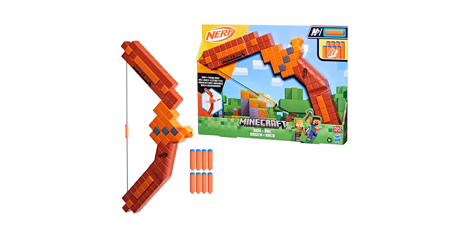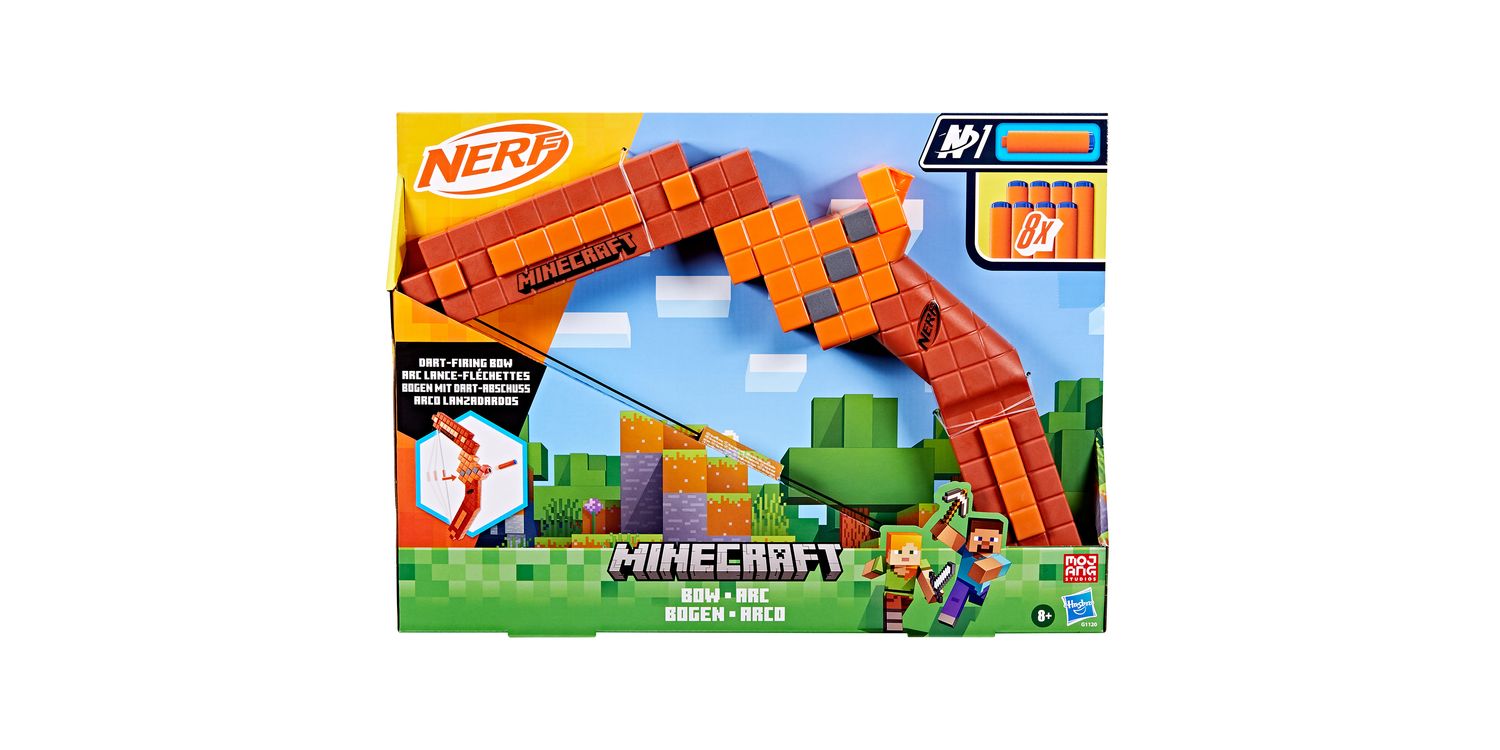 Nerf and Minecraft combine to create distinctive blasters for your Nerf battles! The Nerf Minecraft Bow takes its inspiration from the bow in the popular game. Experience the long-range bow-firing action of the game in real life as you draw the string back and release it to let the dart fly! The Nerf Minecraft Bow includes 8 Official Nerf N1 darts that are designed for extreme accuracy, speed, and distance. The single-dart capacity bow, with true-to-game features, is an eye-catching addition to Minecraft collections and an incredible blaster to add to Nerf cache. The Minecraft-inspired bow is great for backyard adventures as kids imagine themselves diving into the world of Minecraft. Eyewear recommended (not included). Includes: bow and 8 darts.
