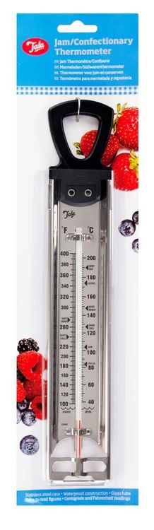 The Tala Jam / Confectionary Thermometer is ideal for jams and sugar. With clear markings it reads from 40 degrees to 200 degrees Celsius and Fahrenheit 100 to 400 degrees. The markings on the thermometer help to determine the exact temperature to achieve the setting point of sweets jams and many other foods. The thermometer is made from high quality stainless steel with a strong plastic handle for ease of use.