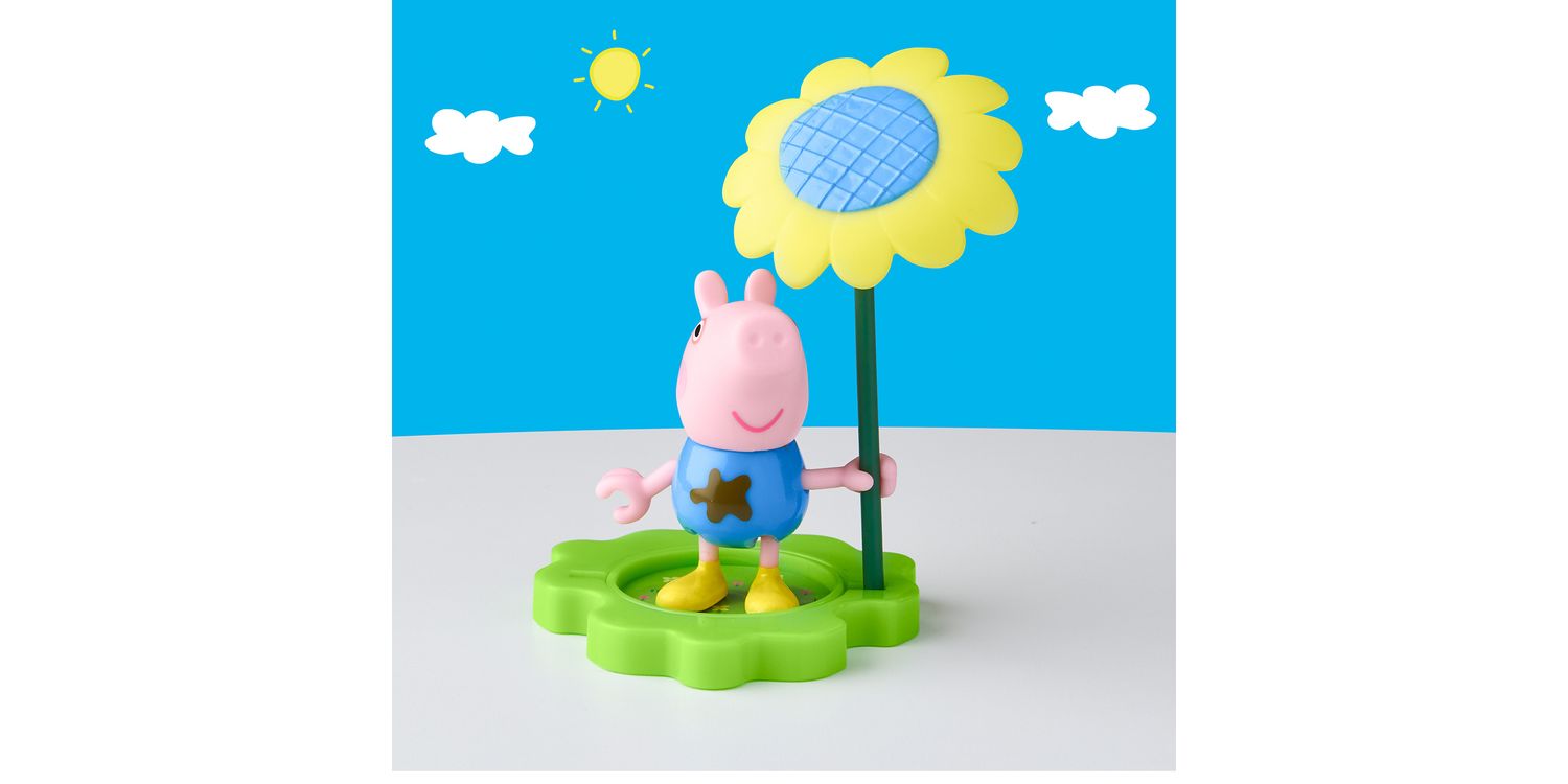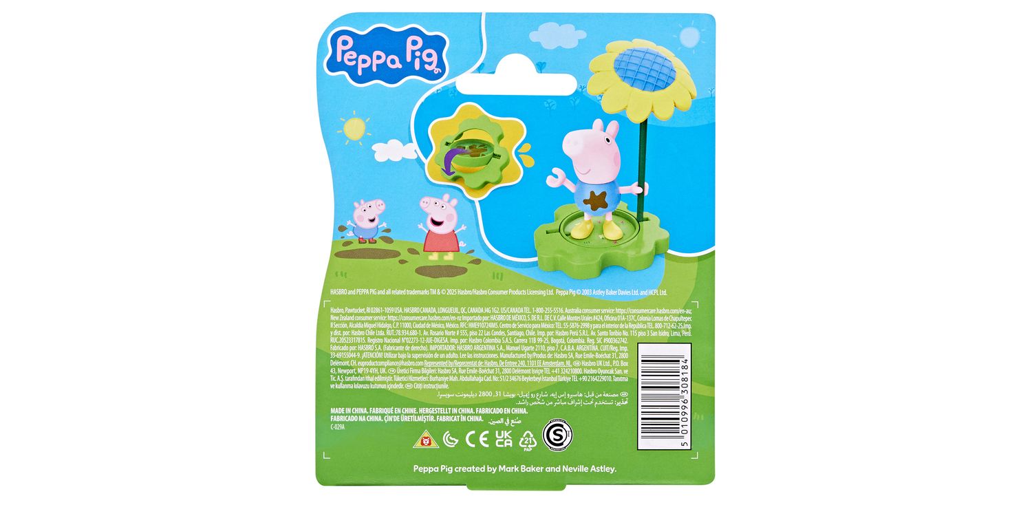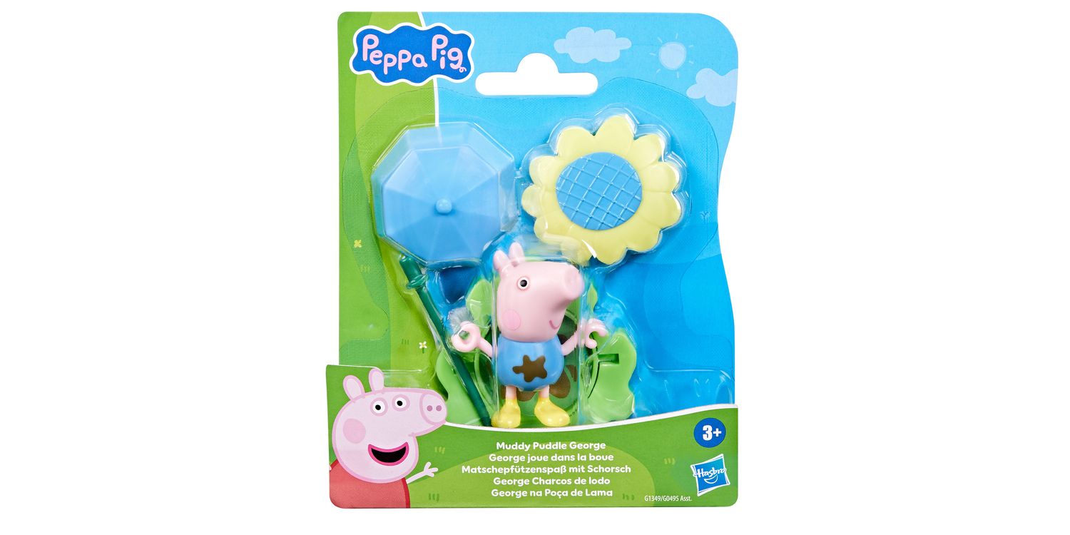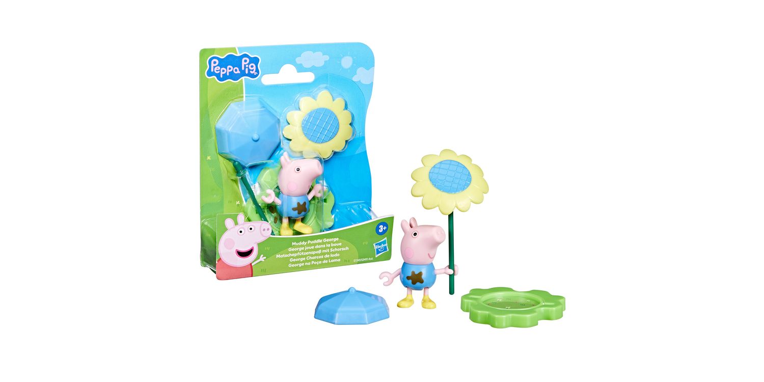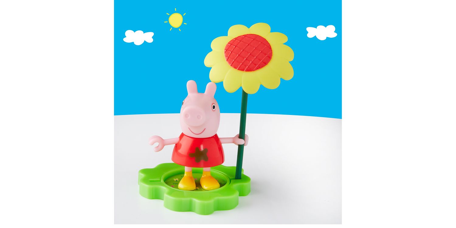 Rain or shine, it’s Peppa playtime with the Muddy Puddle Friends figures! Adorable 3-inch (7.5 cm) poseable figure can hold the included stick that becomes an umbrella for rainy days and a big sunflower for sunny days! The base piece can be flipped to show grass or a muddy puddle, paving the way for everyday adventures. Look for more Muddy Puddle Friends figures (each sold separately, subject to availability) and connect the bases for even more pretend play! Preschool toys like these make great party favours for a Peppa Pig birthday or small gifts for 3 year old girls and boys and up.