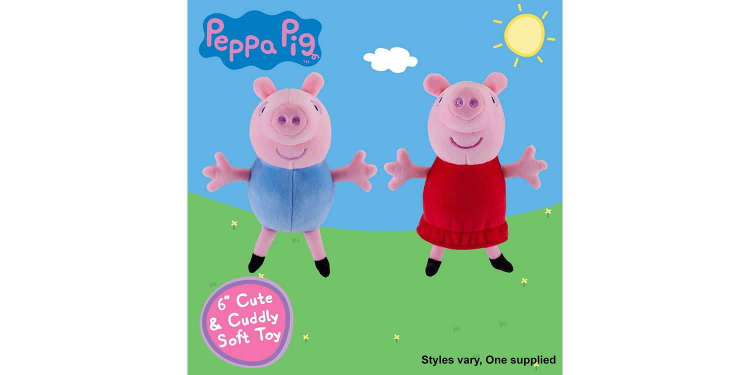 Supersoft Peppa Pig Collectable Soft Toys. Featuring classic Peppa Pig styling, choose from Peppa or George. These cute and cuddly soft toys measure 6” tall and are perfect to take with you where you go. One supplied, styles vary.