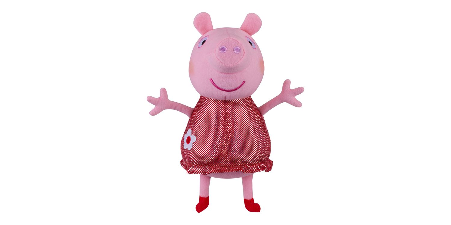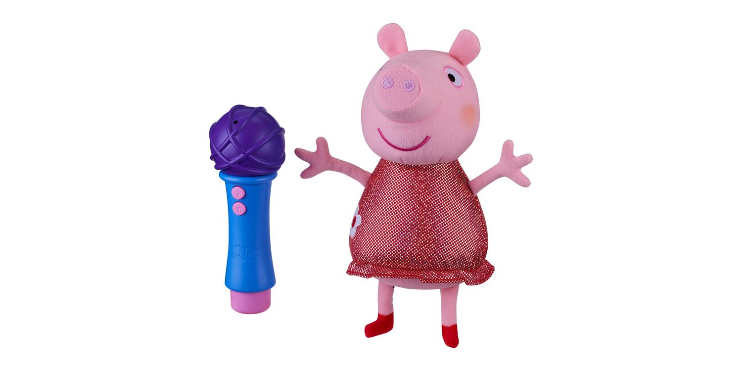 Get into the party mood and practise your singing skills with Sing With Me Peppa. This fun feature plush is a cute and cuddly Peppa Pig soft toy in her sparkly party dress. It includes a special microphone that you can use to sing along with Peppa!