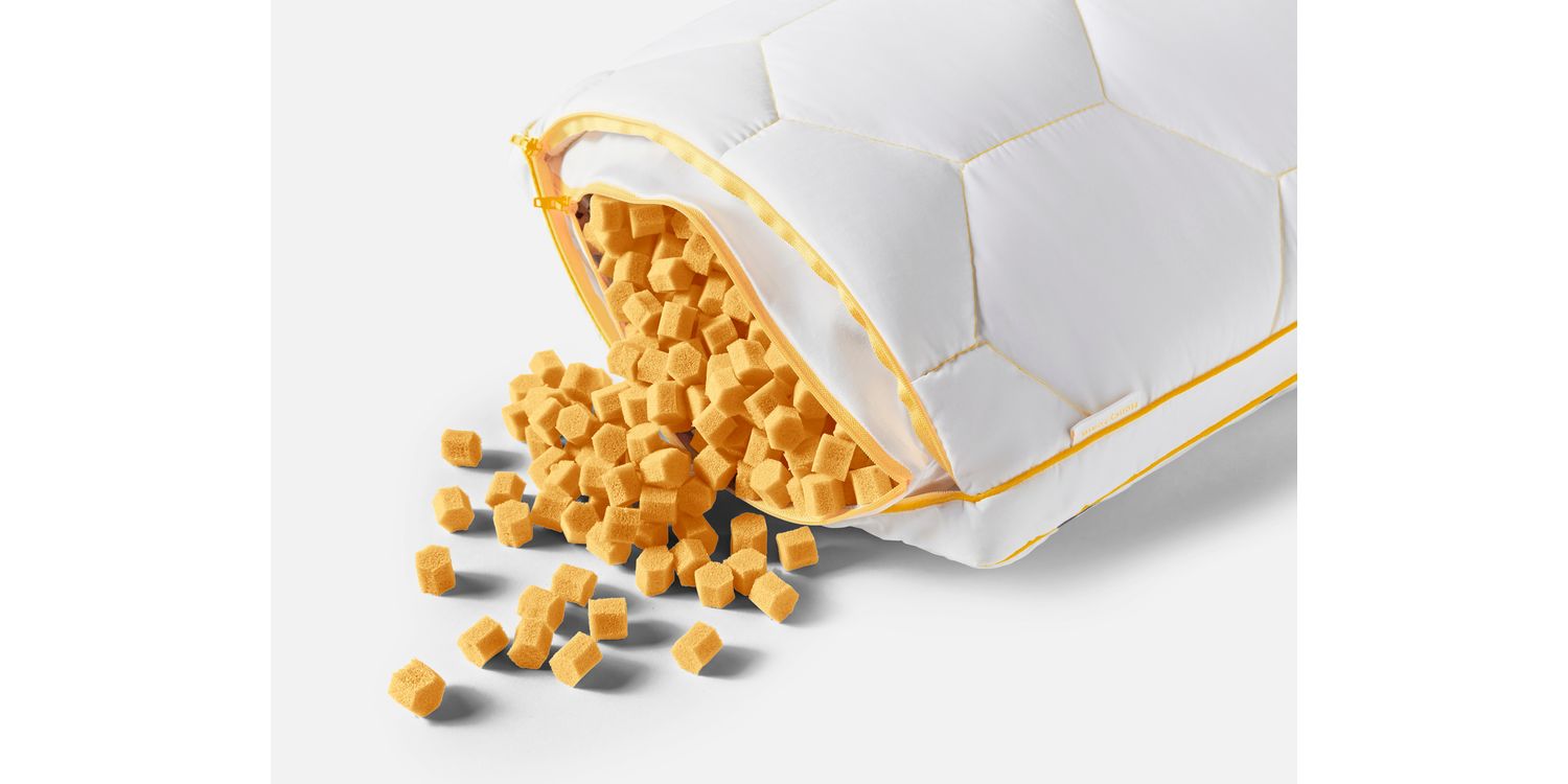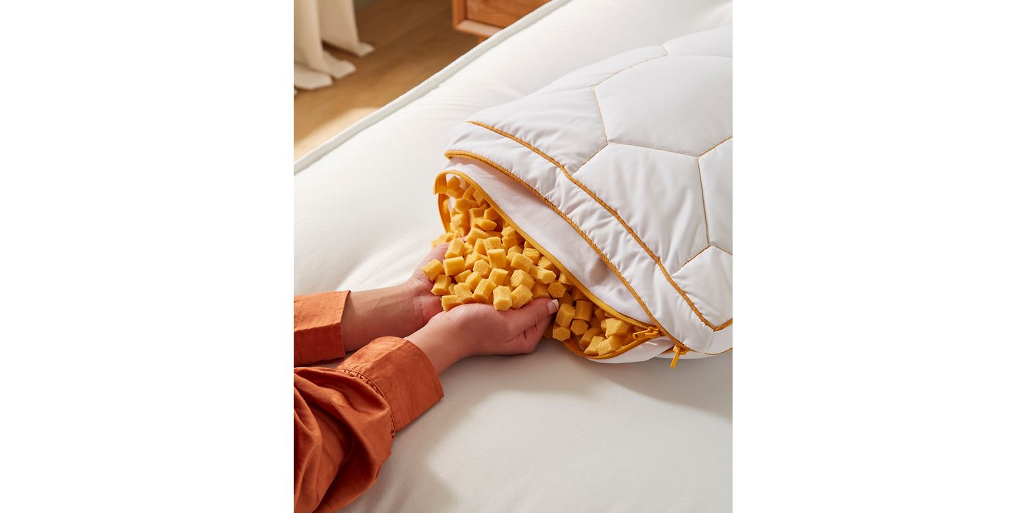 When your HoneyFoam™ Pillow arrives, it comes in three simple parts: the quilted outer cover, the inner tick already filled with our unique HoneyFoam™ clusters, and a storage bag for any clusters you choose to remove. To assemble, simply place the inner tick inside the outer cover. If you’d like a softer feel, unzip the inner tick halfway and take out as many clusters as you like — then keep them safe in the storage bag for later. Zip everything back up, slip the pillow into your favourite pillowcase, and you’re ready for your first night of personalised comfort.