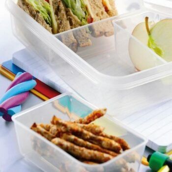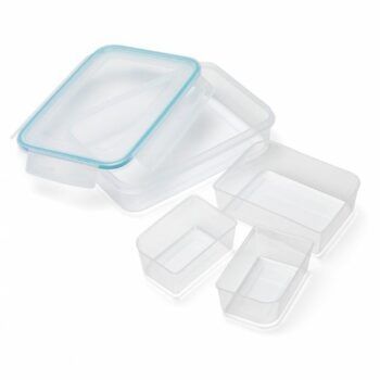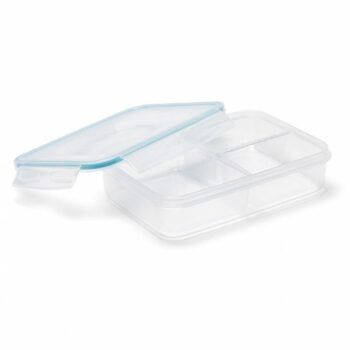 1.1L Rectangular container with removable inserts.  Ideal for packed lunches or freezing a meal. Also dishwasher & microwave safe.