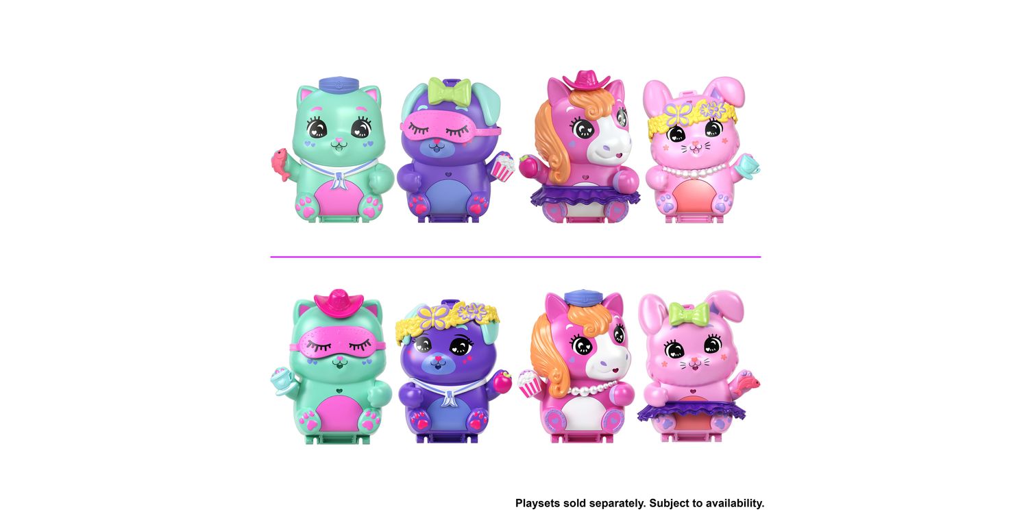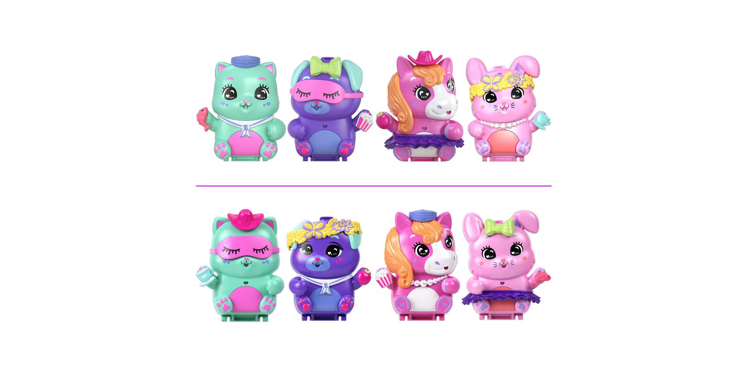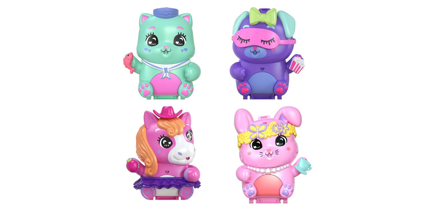 Polly Pocket Core Compacts hold tiny worlds with big surprises that kids can take on the go! Each portable toy features an adorable animal character on the outside with an interactive dress-able detail where kids can mix and match styling accessories for never-ending play possibilities! After styling the playset exterior, open the compact to reveal one micro doll, multiple moving play features and 10+ accessories. Have a puppy slumber party, visit a pony rodeo, set sail on a kitty cruise ship, or have a tea party with bunny friends -- kids will want to collect them all to combine the worlds and expand the fun! Each sold separately, subject to availability. Colours and decorations may vary.