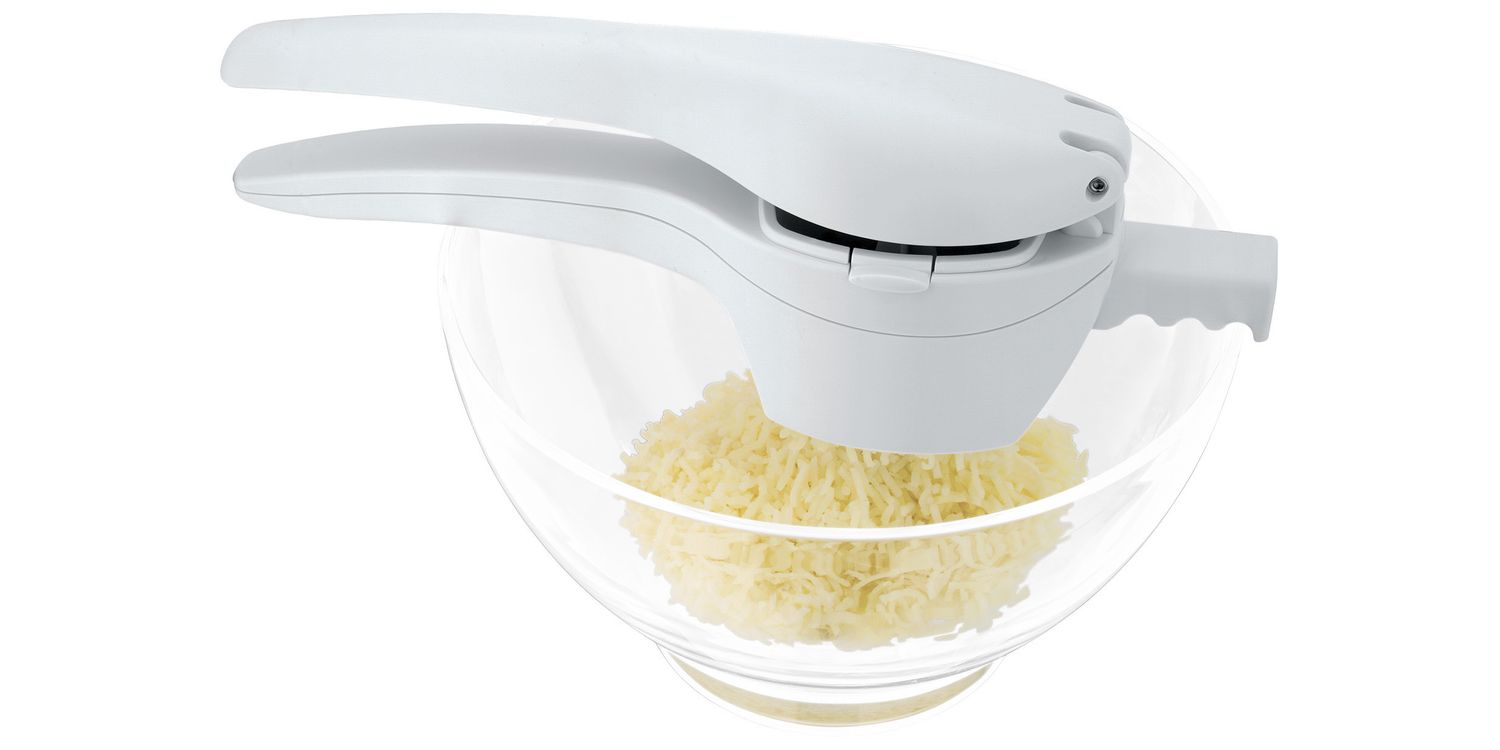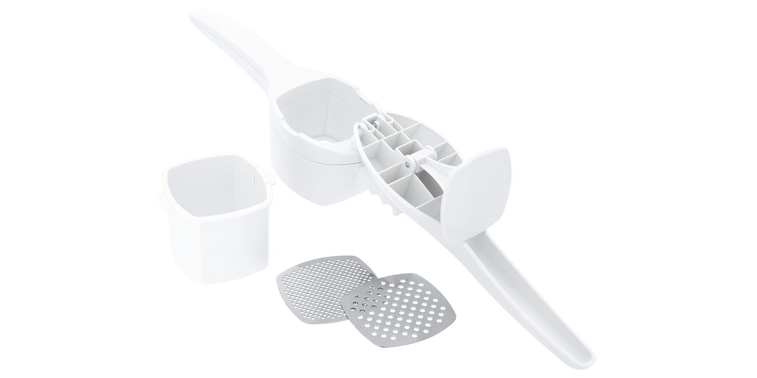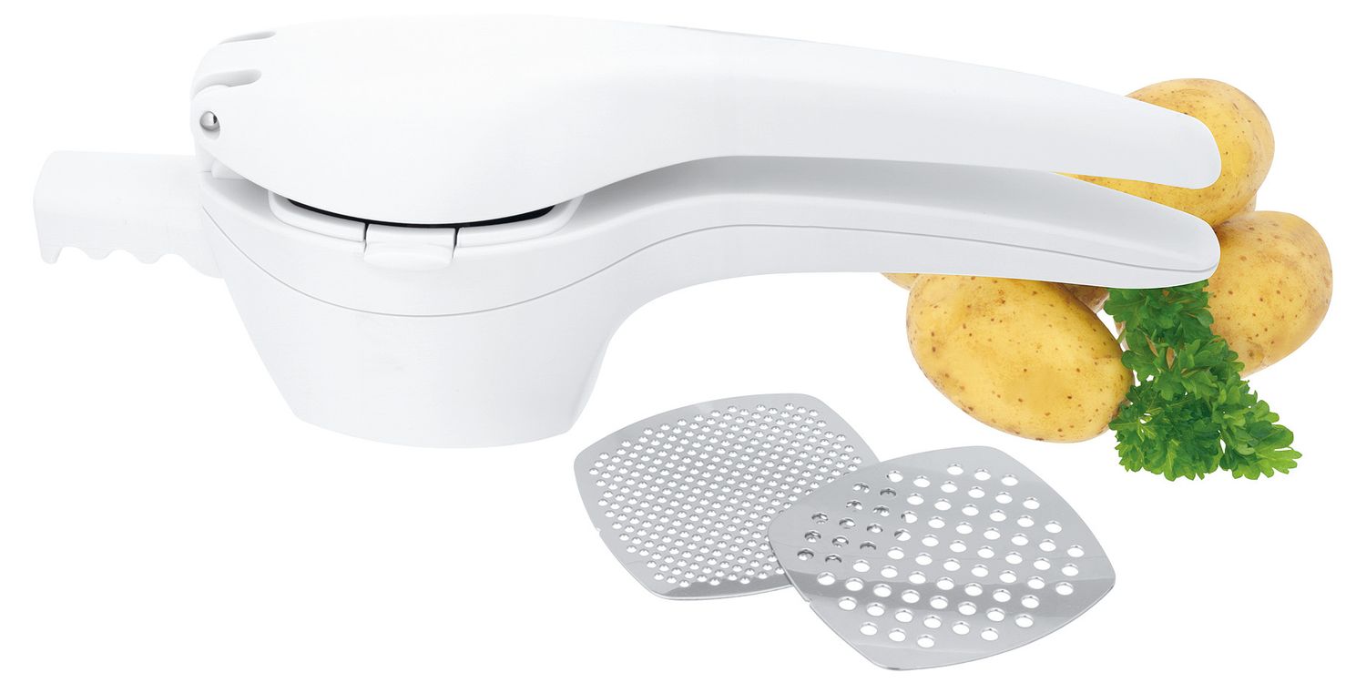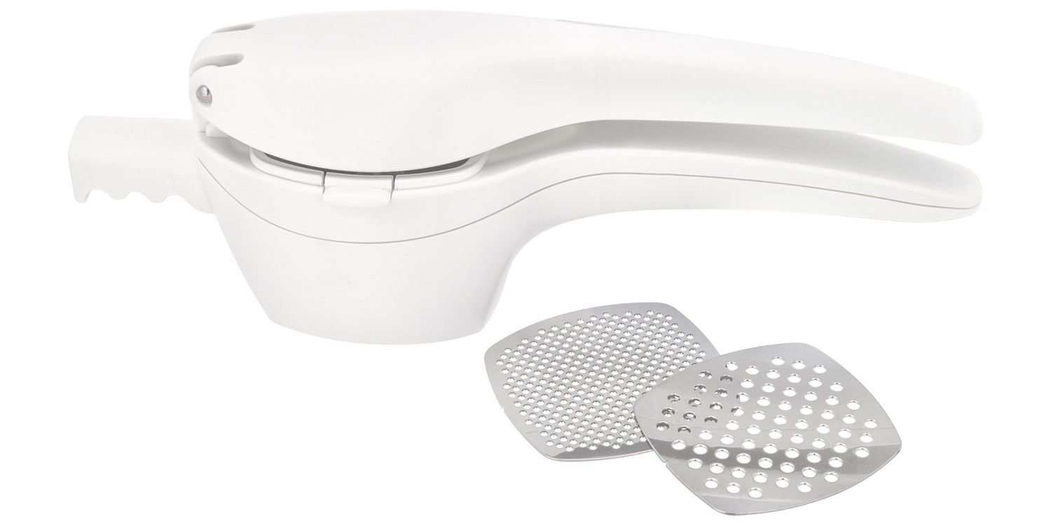 • Interchangeable stainless steel masher plates