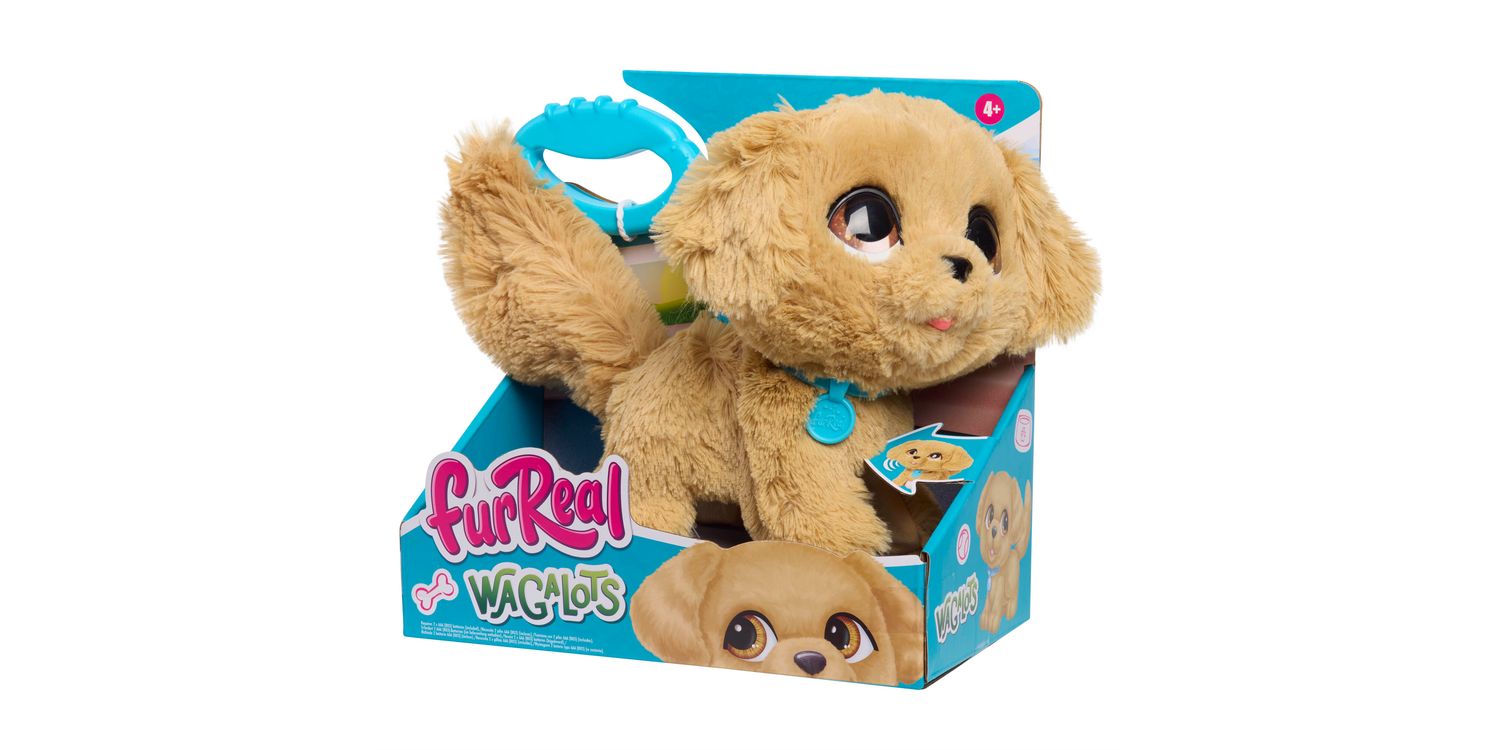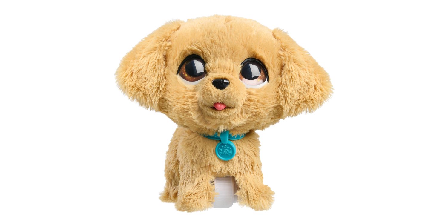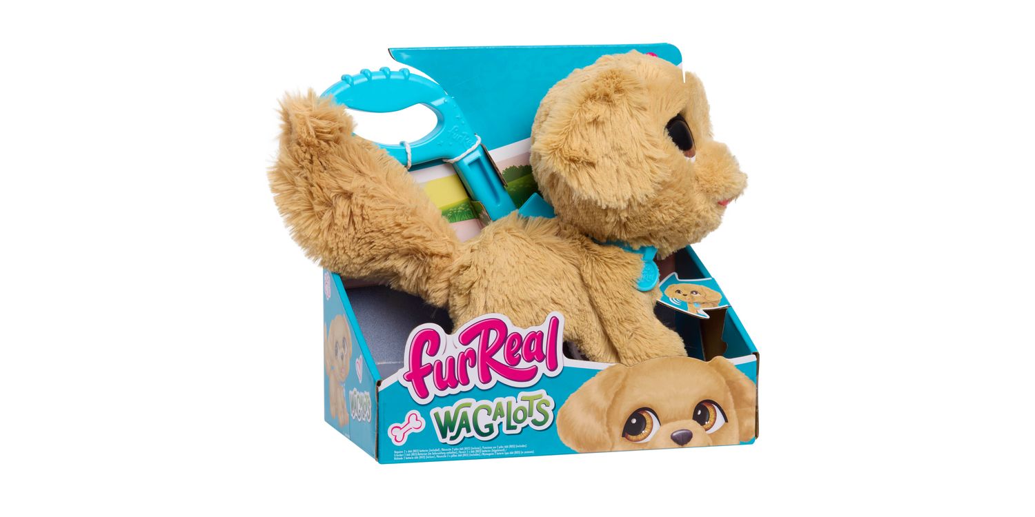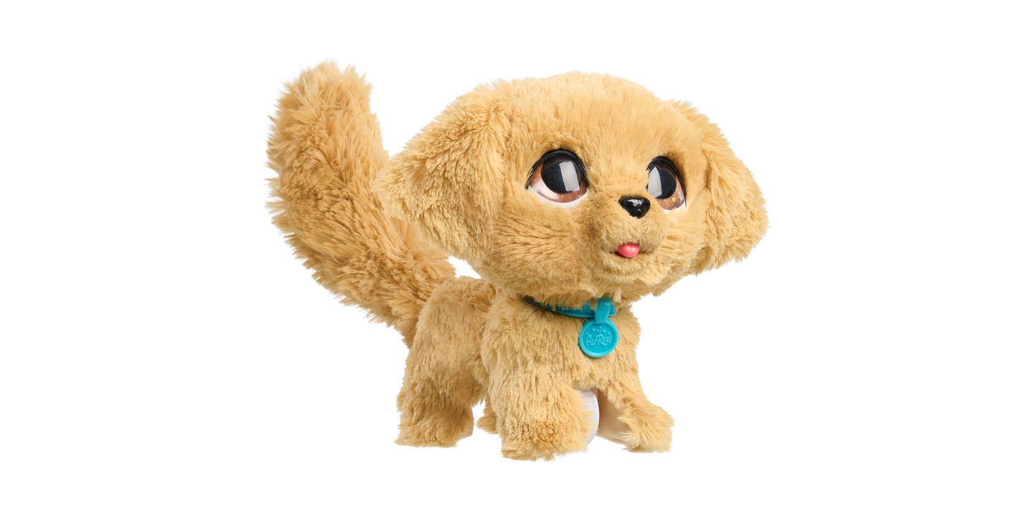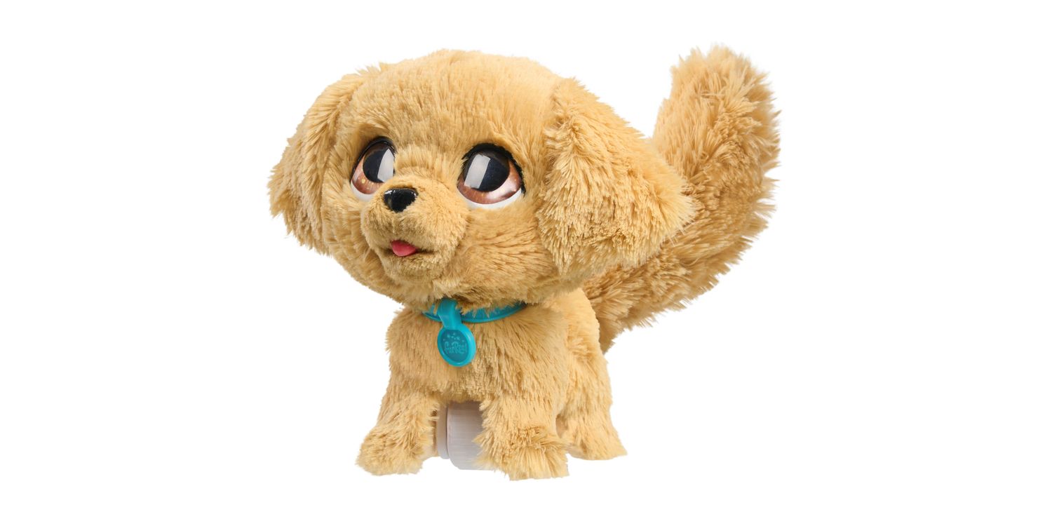 This adorable 8-inch-tall kids’ toy makes cute yips, barks, and sound effects as she travels. After the walk, kids can cuddle, pet, and nurture their puppy. This golden retriever toy makes a sweet addition to any kid’s collection of stuffed animals and furReal pets (each sold separately).