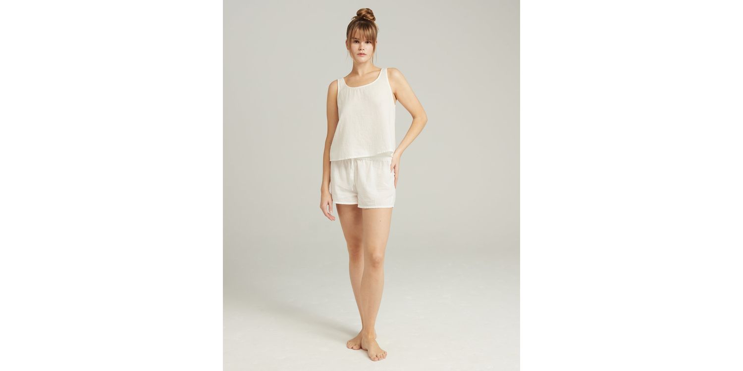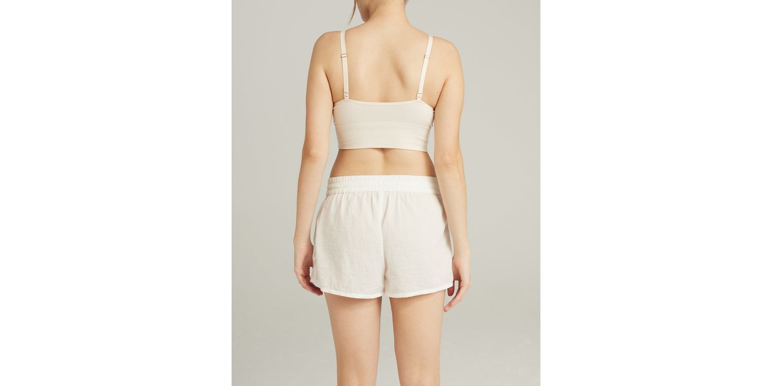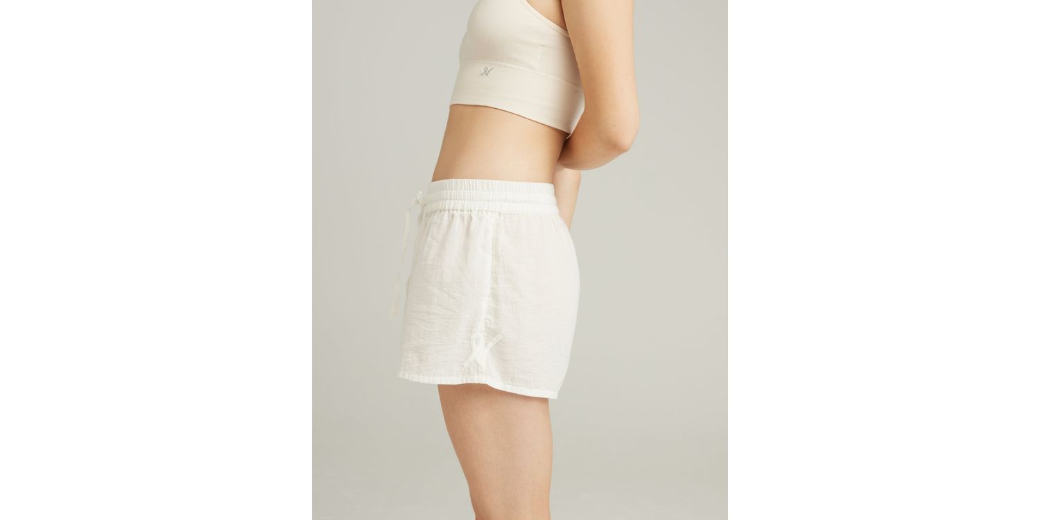 Flattering drawstring short style in 100% organic cotton perfect for that Sunday morning state of mind.