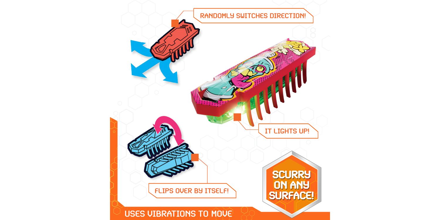 These autonomous robotics HEX BOTS nano kids’ toys feature a brand new look with street art inspired decorations and they crawl and move completely on their own, so you don’t have to control them as you would with other RC insect toys. Powered by vibration technology, these sensory toys for kids aged 5–7 years old never stop exploring every nook and cranny.