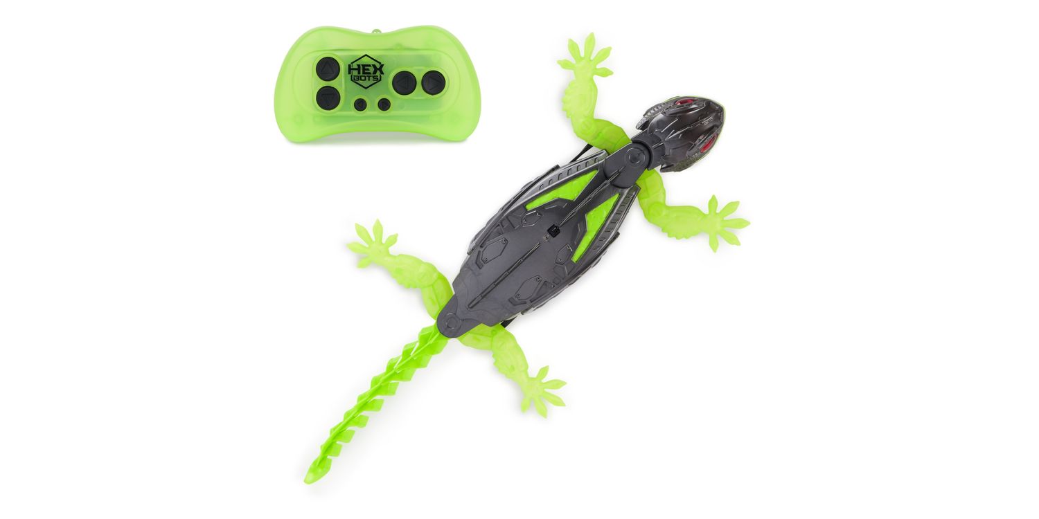 Creep out friends and family with the HEX BOTS Wall Crawler Gecko! This hyper-realistic robot toy lizard is guaranteed to get a scream out of anyone afraid of creepy crawly insects or bugs! Watch as your Gecko scurries across the floor and scales up walls, just like a real gecko! A full function remote control allows for intuitive play as you can control it just the way you want, and LED light eyes make the Wall Crawler Gecko stand out in the dark!