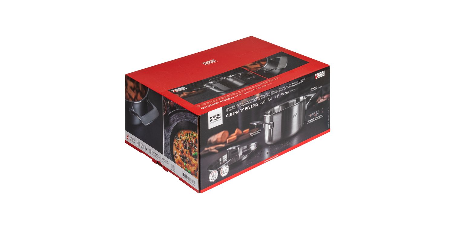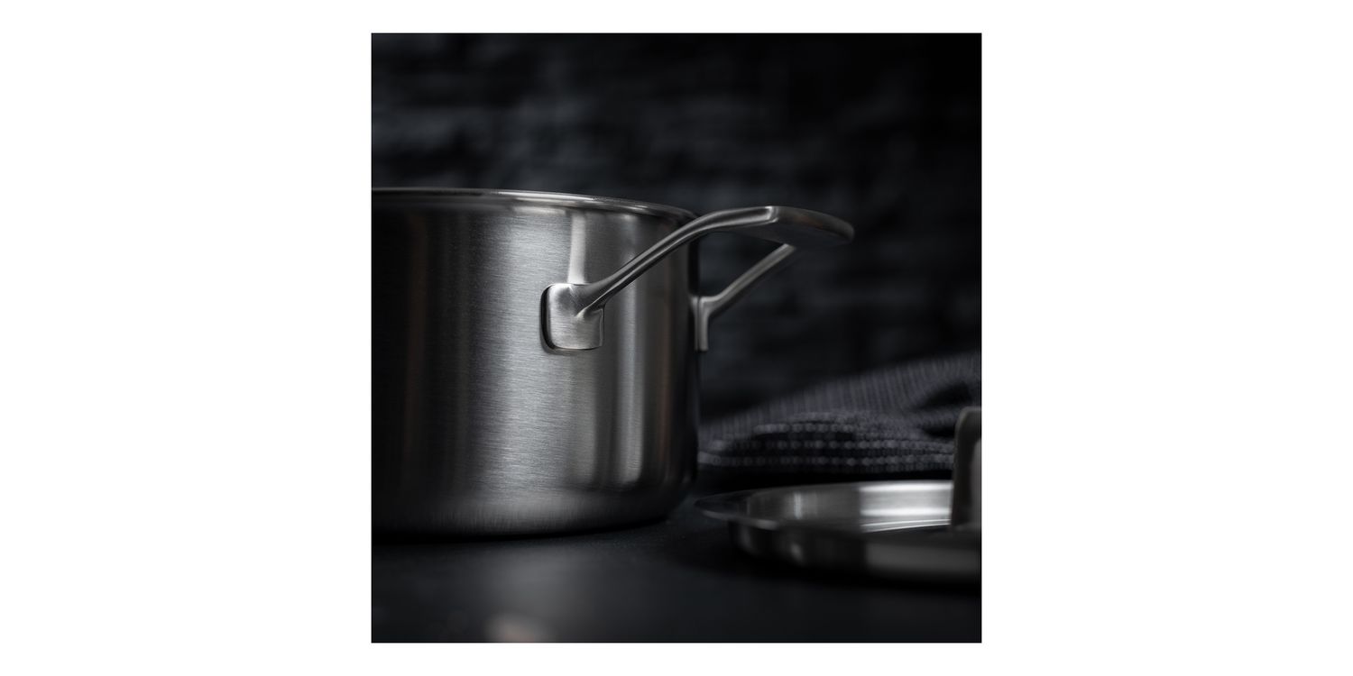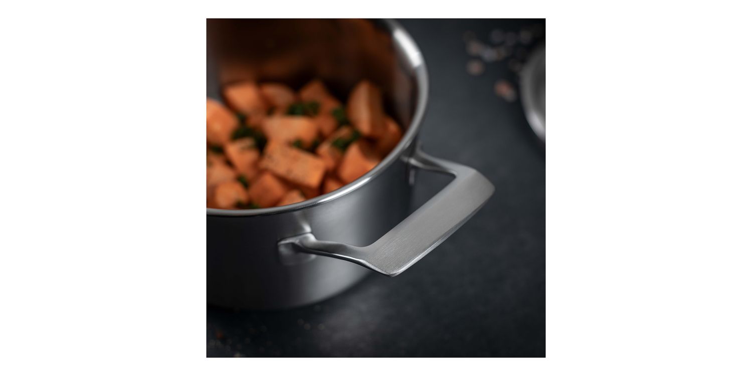Thanks to its high-quality 5-ply multi-layer material and a material thickness of 3.2 mm, the CULINARY FIVEPLY pot is extremely robust and durable. The special combination of different alloys (stainless steel - aluminium - stainless steel) distributes the heat evenly over the entire surface right up to the rim. This means that your food is also heated evenly from the side.