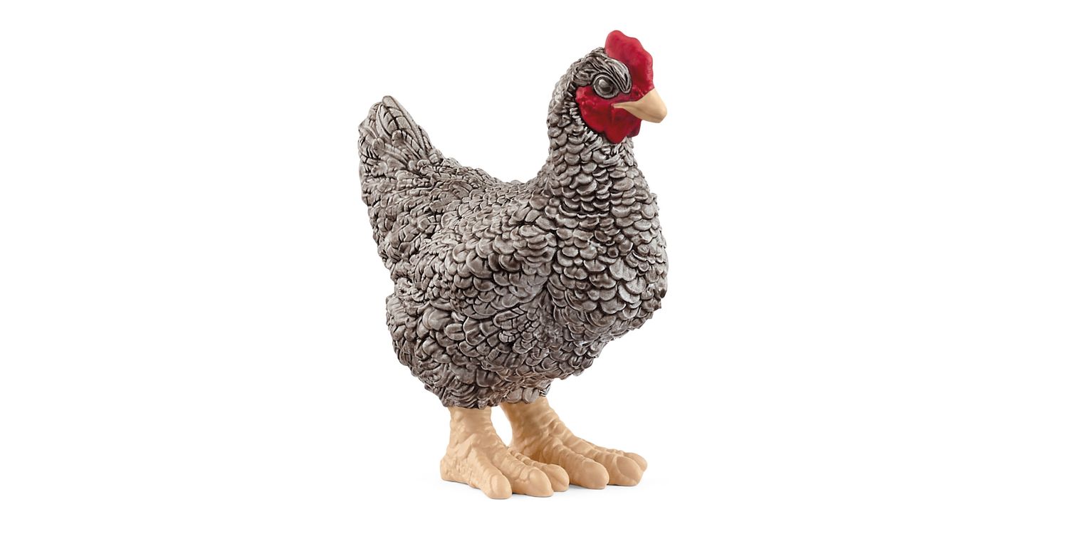 The pretty Plymouth Rock chicken is a real eye-catcher on the farm. It has very dense, fluffy plumage and striking black and white stripes. Its many feathers keep it cosy and warm even in winter. This allows it to lay eggs reliably all year round