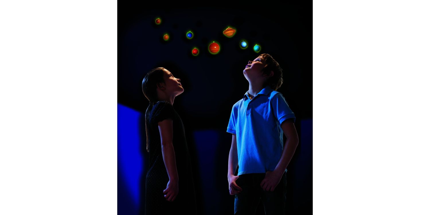 Bring space into your bedroom with this glowing model solar system. Use the clear string to hang eight planets from your ceiling. Detailed on the packaging are the names of each planet so you can display them in their positions within the Solar System. This product is educational and makes a fantastic room decoration. By day the planets are bright, colourful and fun but then at night-time, when the lights go out, they produce a fantastic glowing display.