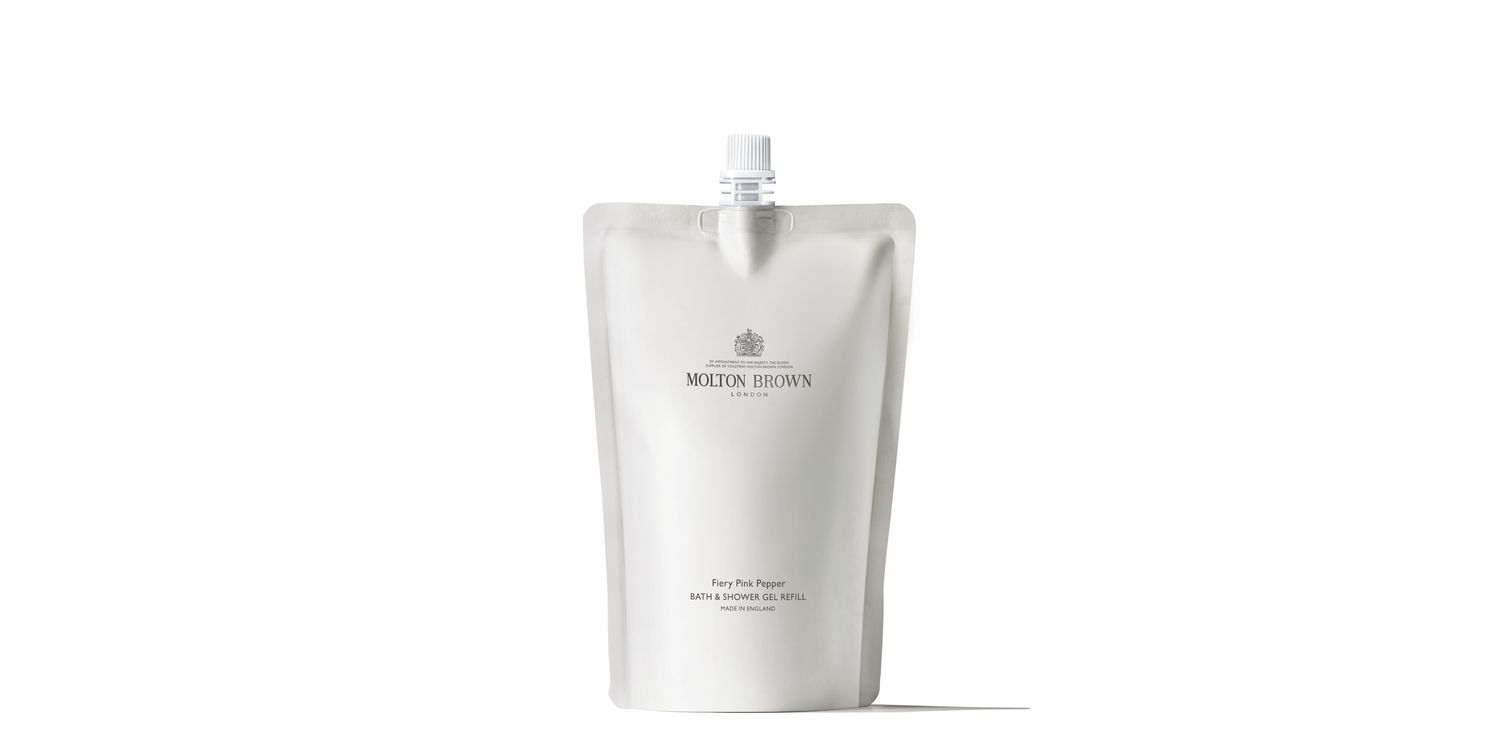 Replenish your bath and shower gel with this refill pouch in the iconic Fiery Pink Pepper fragrance. Curiously scented with pink pepper, nutmeg and patchouli, this refill can be used to replenish your reusable glass bottle time and time again.